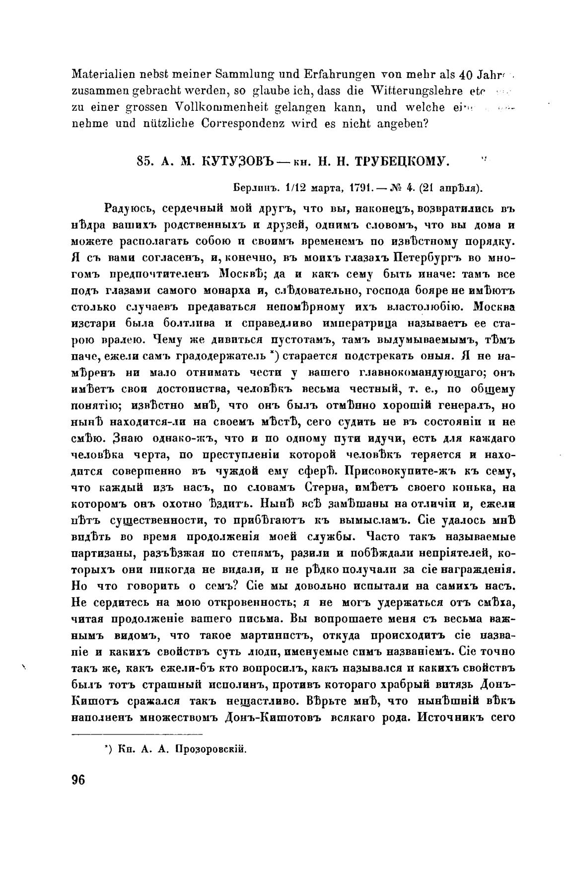 85. А. М. КУТУЗОВЪ—кн. Н. Н. ТРУБЕЦКОМУ.