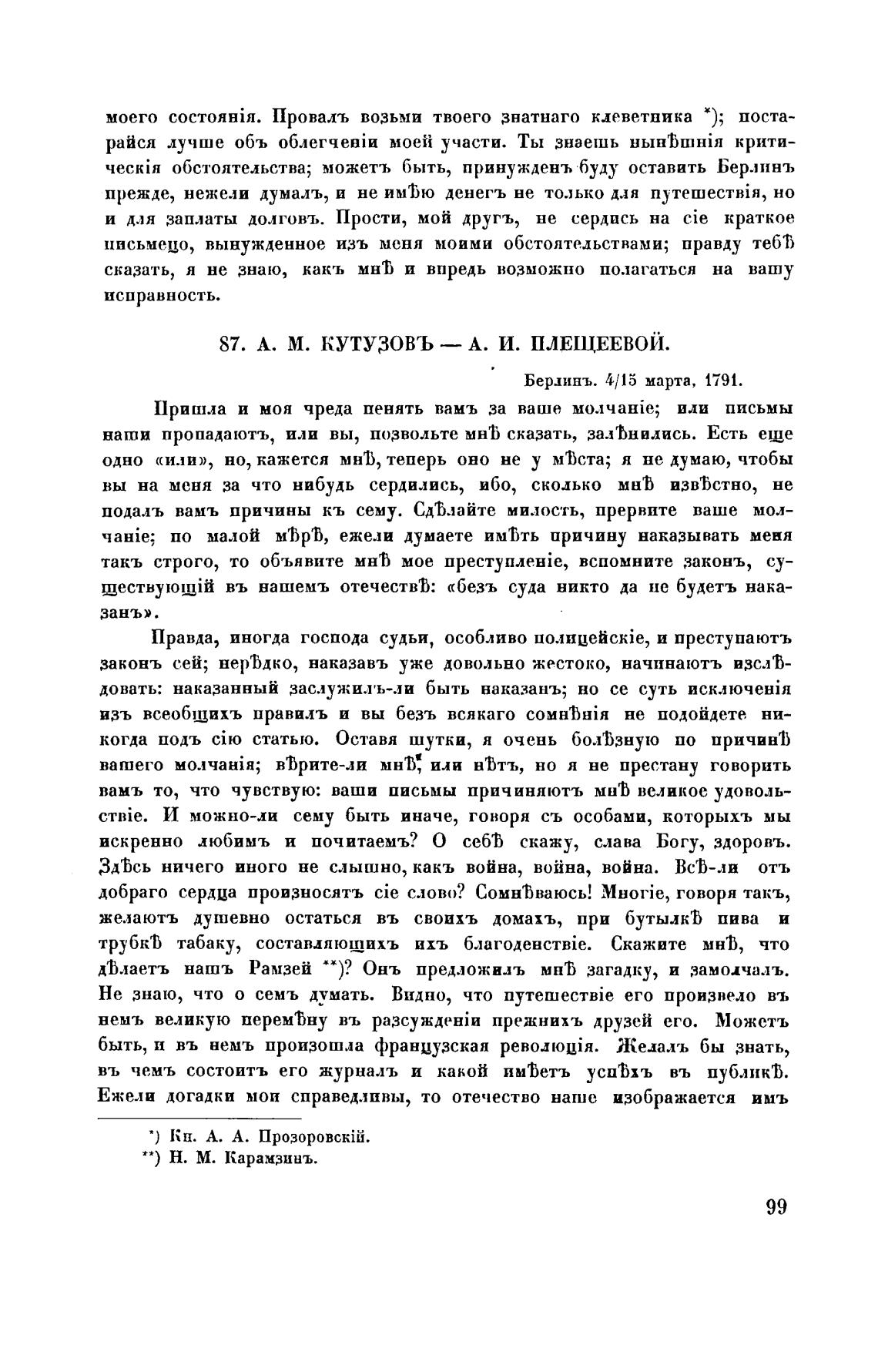 87. А. М. кутузовъ — А. И. ПЛЕЩЕЕВОЙ.