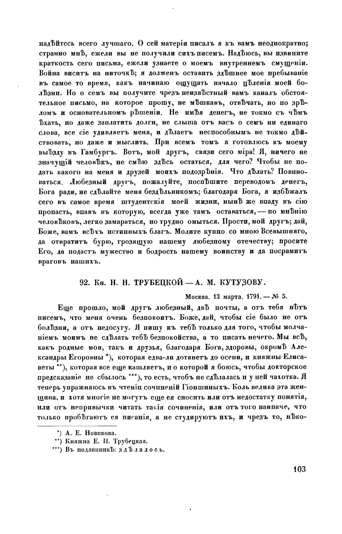 92. кн. Н. Н. ТРУБЕЦКОЙ— А. М. кутузову.