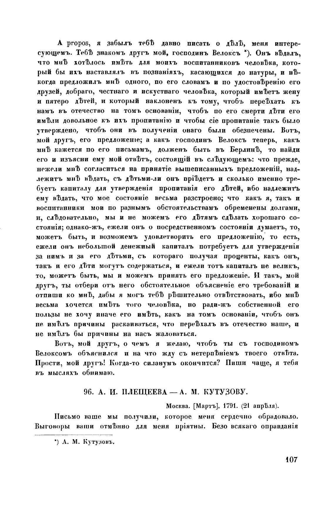 96. А. И. ПЛЕЩЕЕВА — А. М. КУТУЗОВУ.