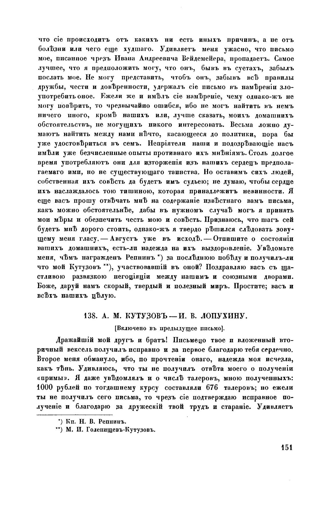 138. А. М. КУТУЗОВЪ—и. В. лопухину.