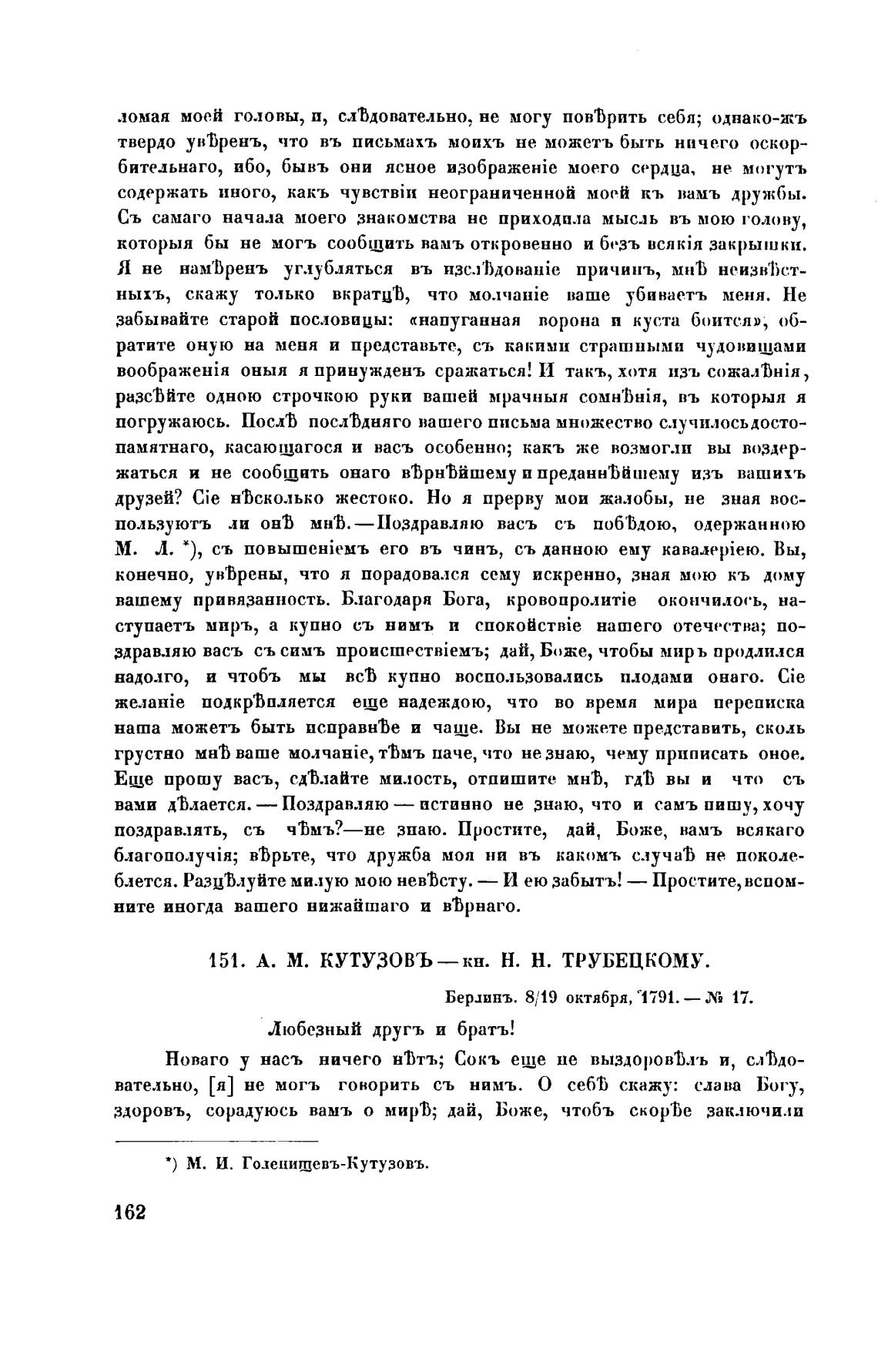 151. А. М. кутузовъ—кн. Н. Н. ТРУБЕЦКОМУ.
