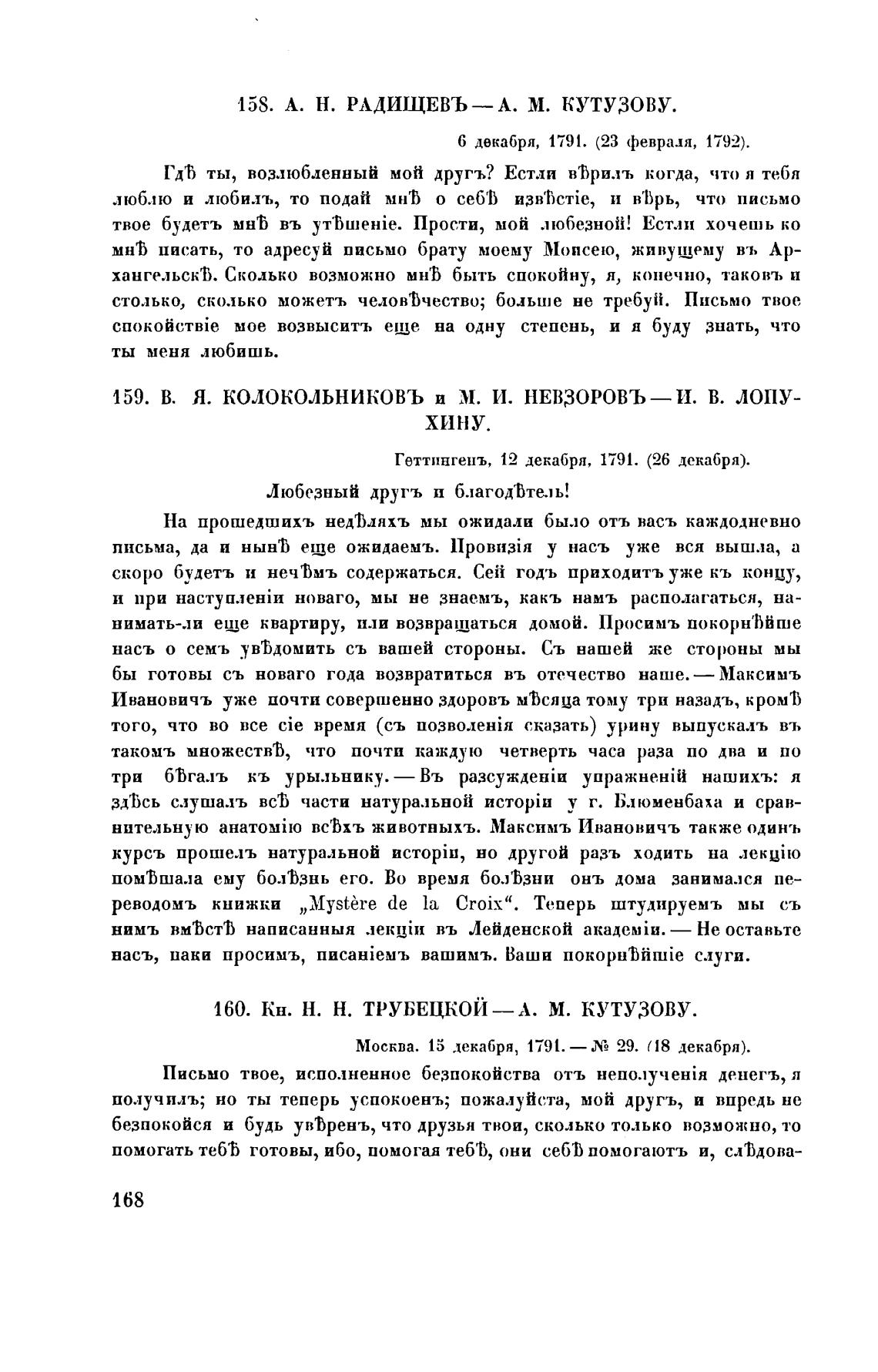 158. А. Н. РАДИЩЕВЪ—А. М. КУТУЗОВУ.