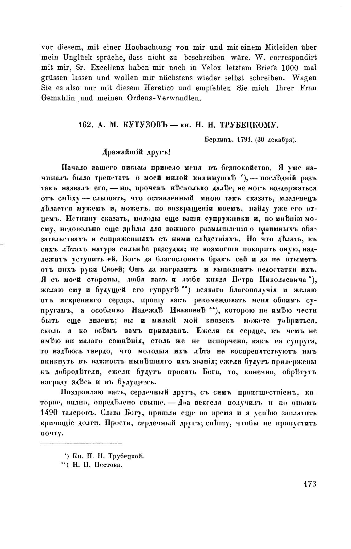 162. А. М. КУТУЗОВЪ— кн. Н. Н. ТРУБЕЦКОМУ.