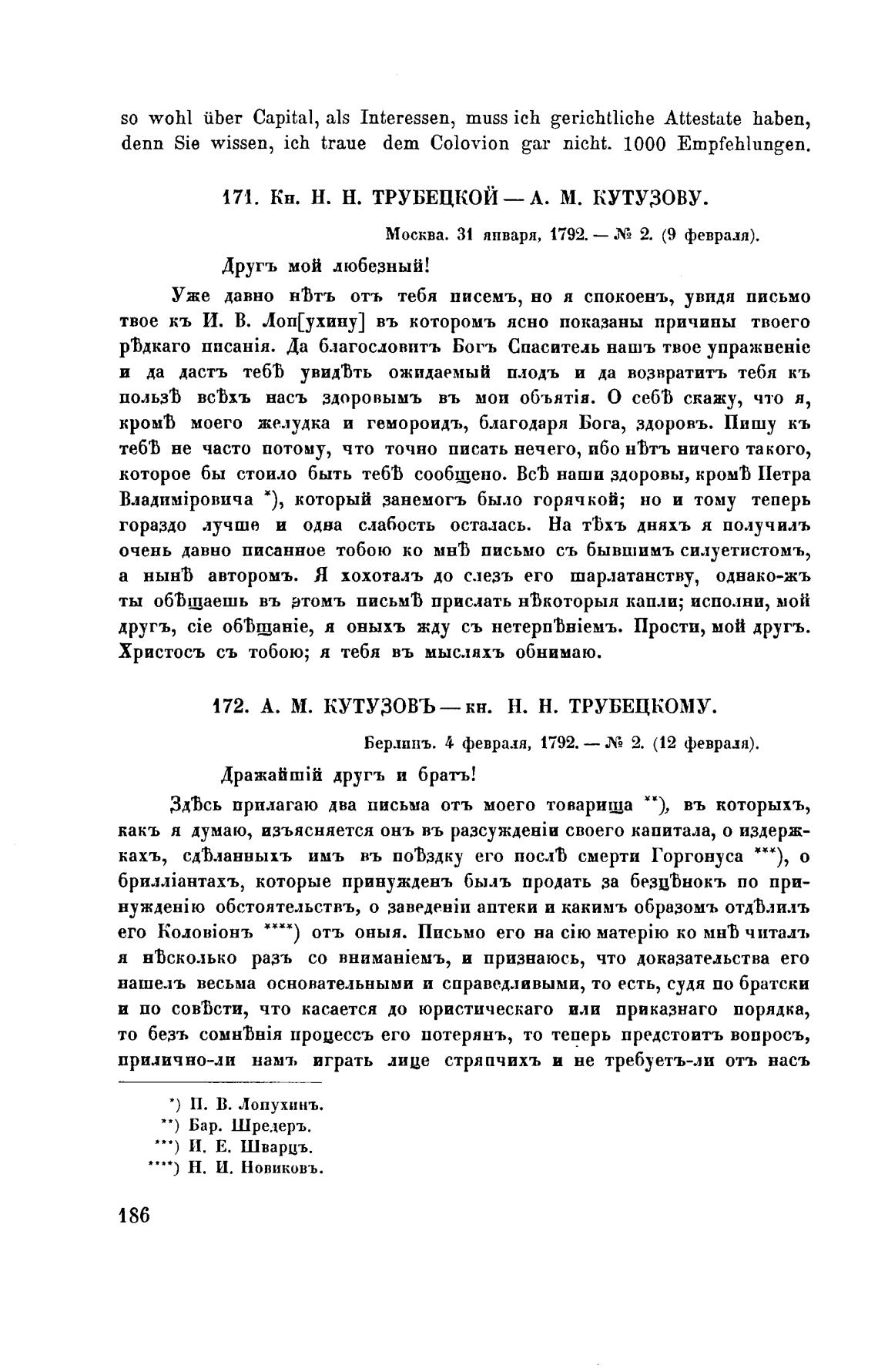 172. А. М. КУТУЗОВЪ—кн. Н. Н. ТРУБЕЦКОМУ.
