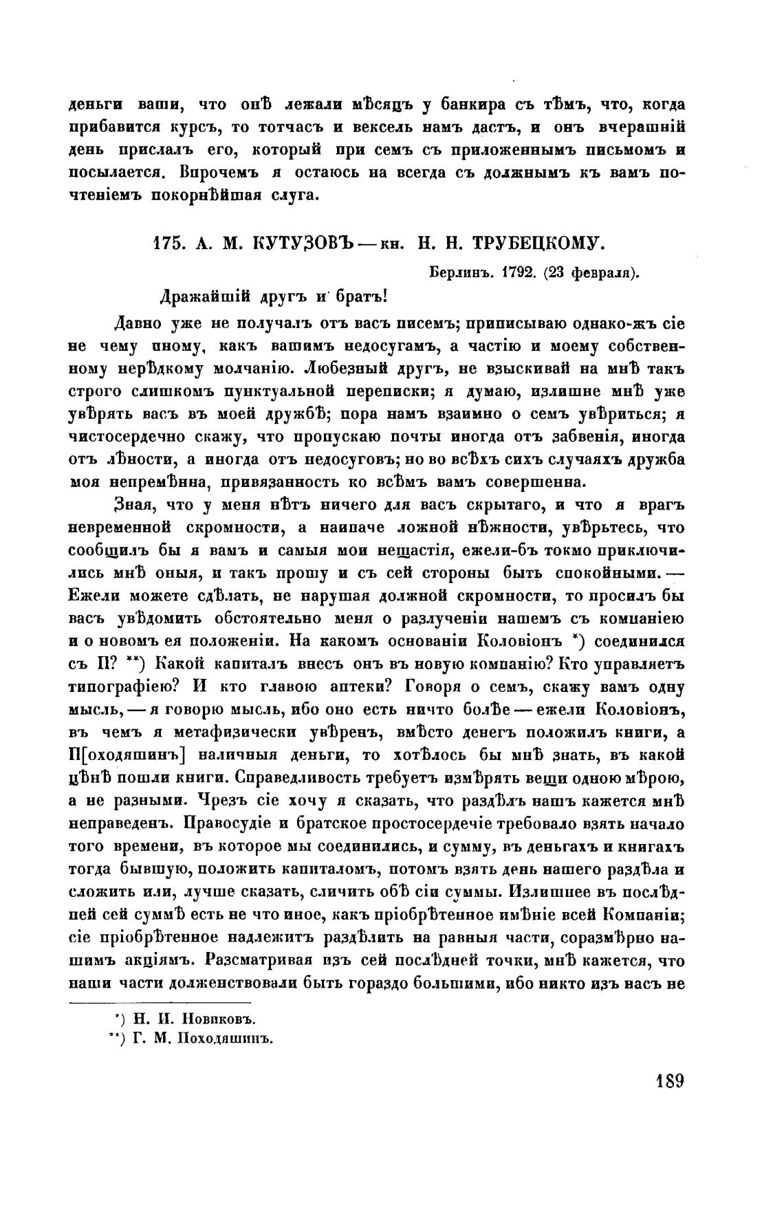 175. А. М. КУТУЗОВЪ—кн. Н. Н. ТРУБЕЦКОМУ.