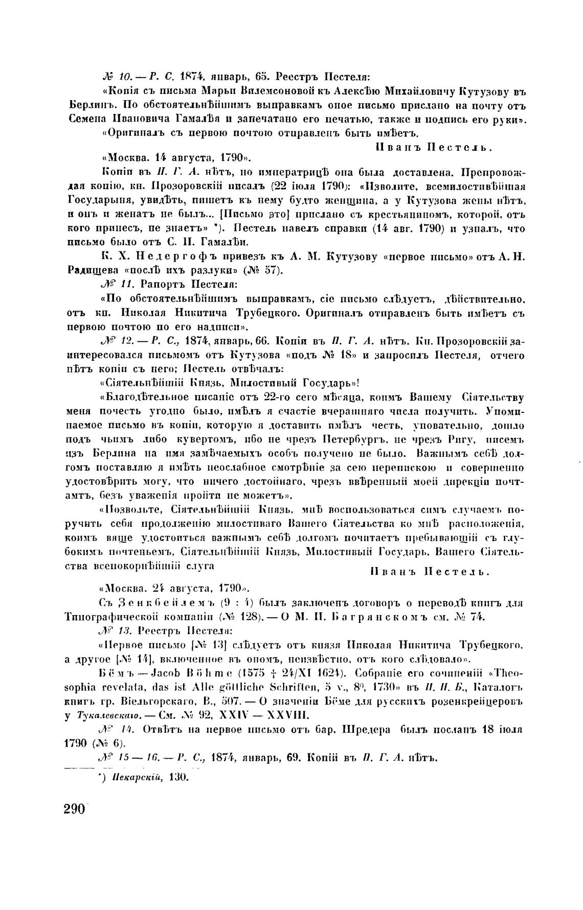 Л; 10. — Р. С. 1874, январь, 65. Реестръ Пестеля: