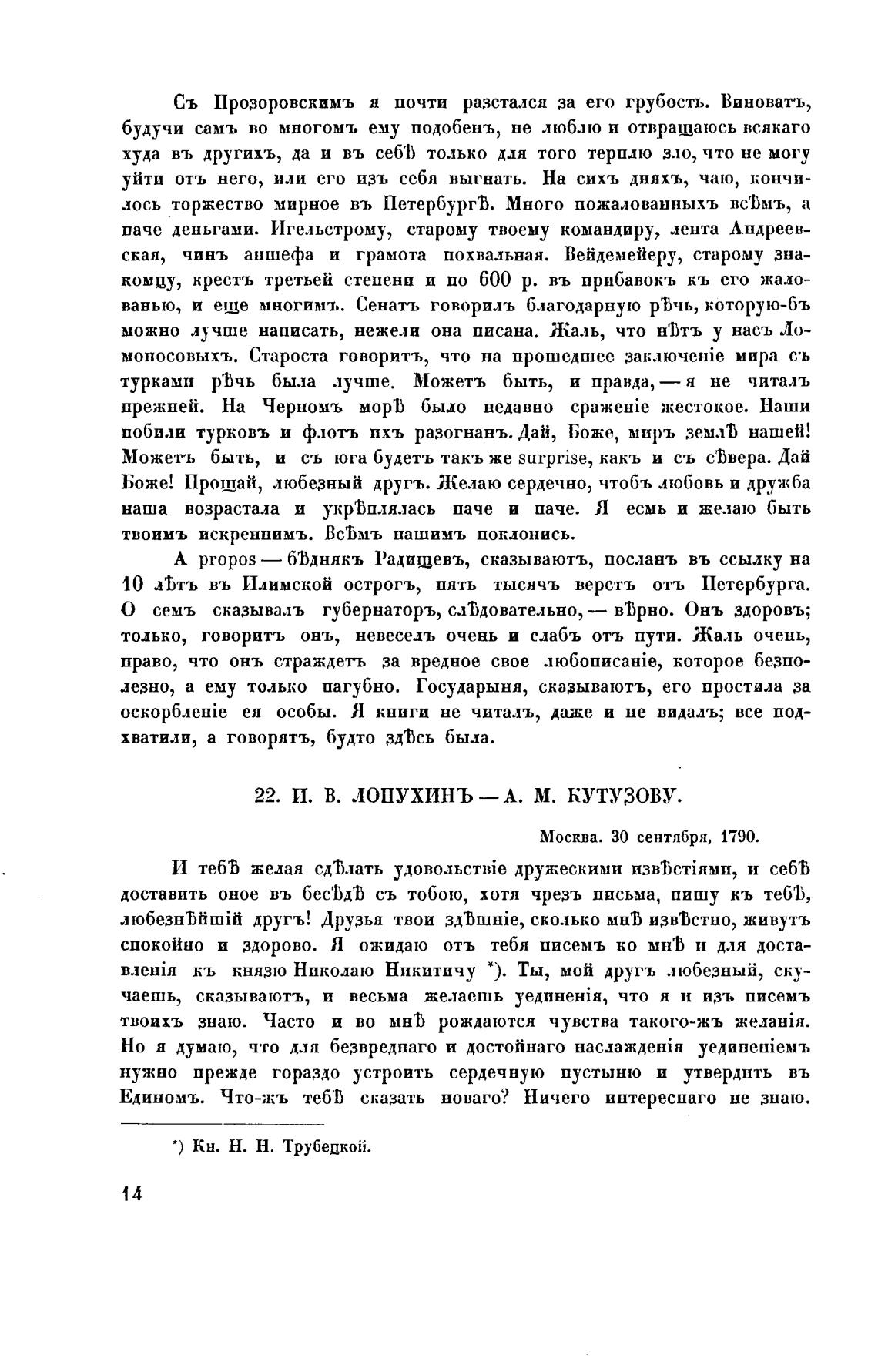 22. И. В. ЛОПУХИНЪ — А. М. КУТУЗОВУ.