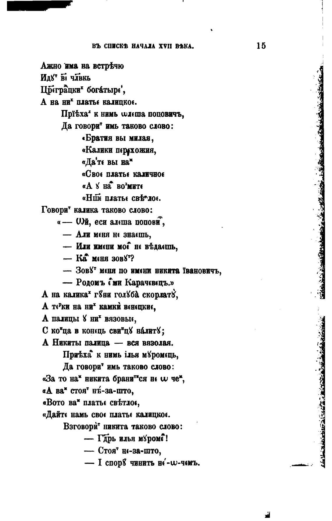 Говорит калика таково слово: