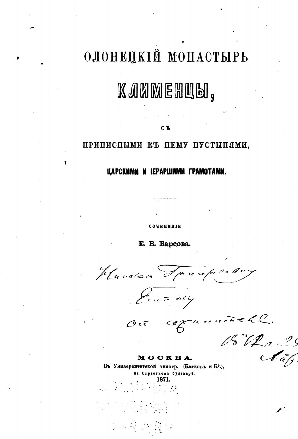 Въ Университетской типогр. (Еатвовъ и ко.),