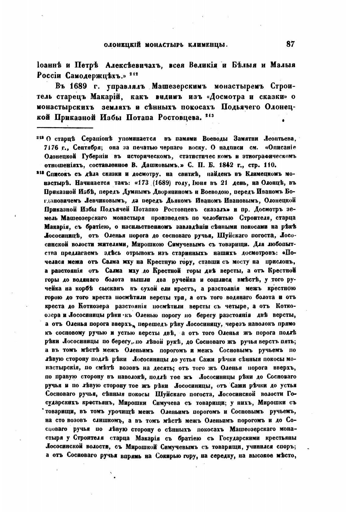 монастырскихъ земляхъ и С'ђнныхъ покосахъ Подьячего Олонец-