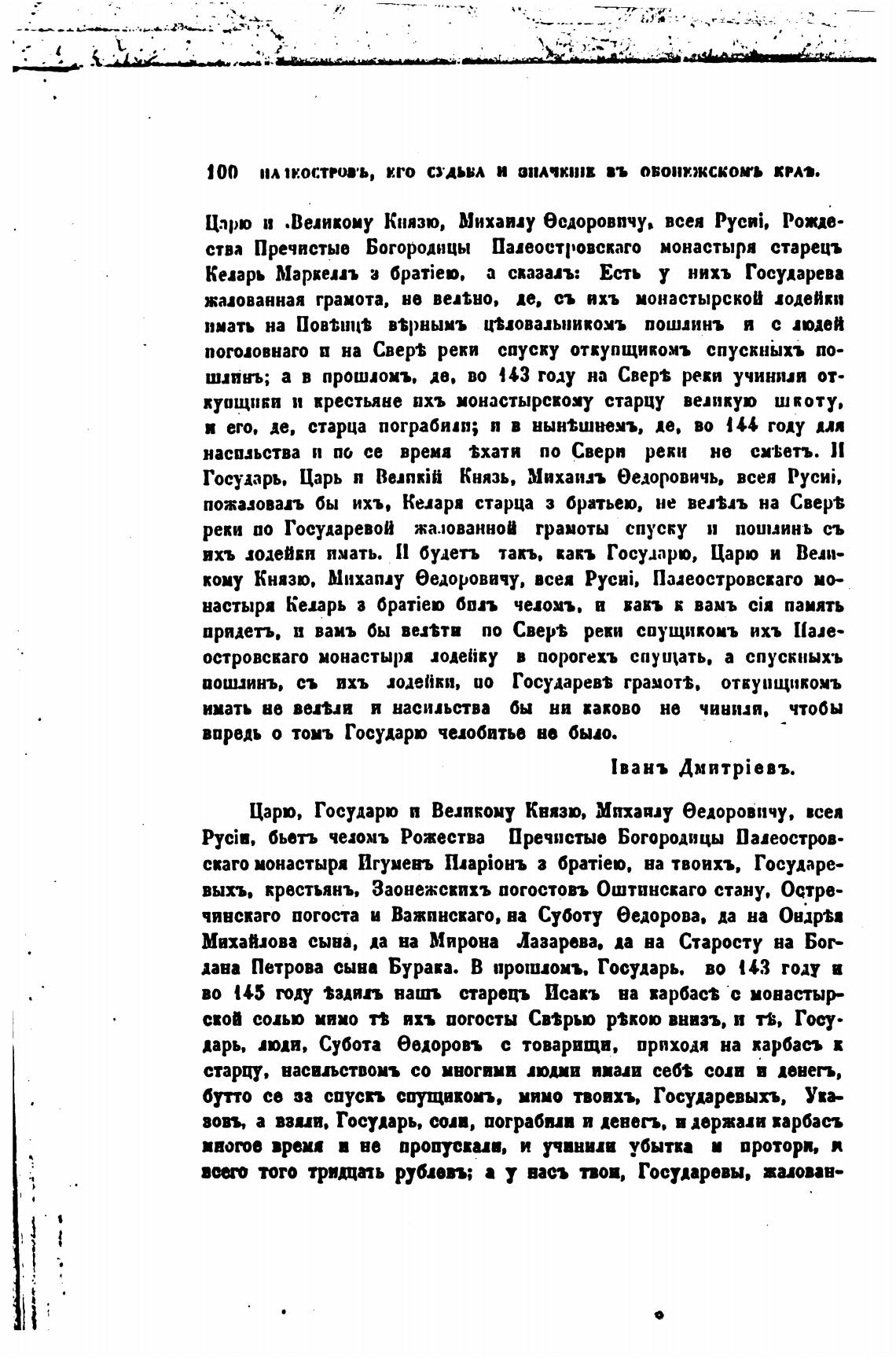 100 1У.остров•ь, МГО ОДЬВА И ВЪ ОБОНЕЖСКОП КРАТ.