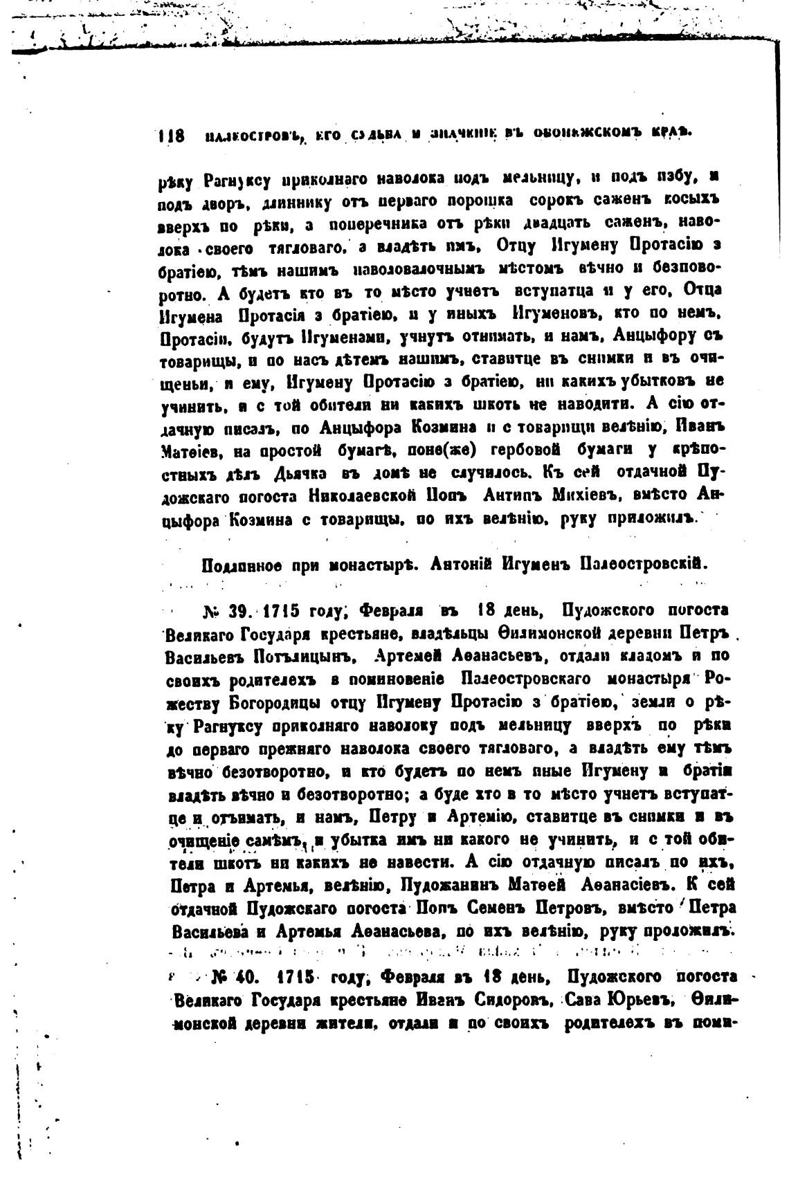 39. • 1715 году; Февраля п 18 день, Пудожского погоста