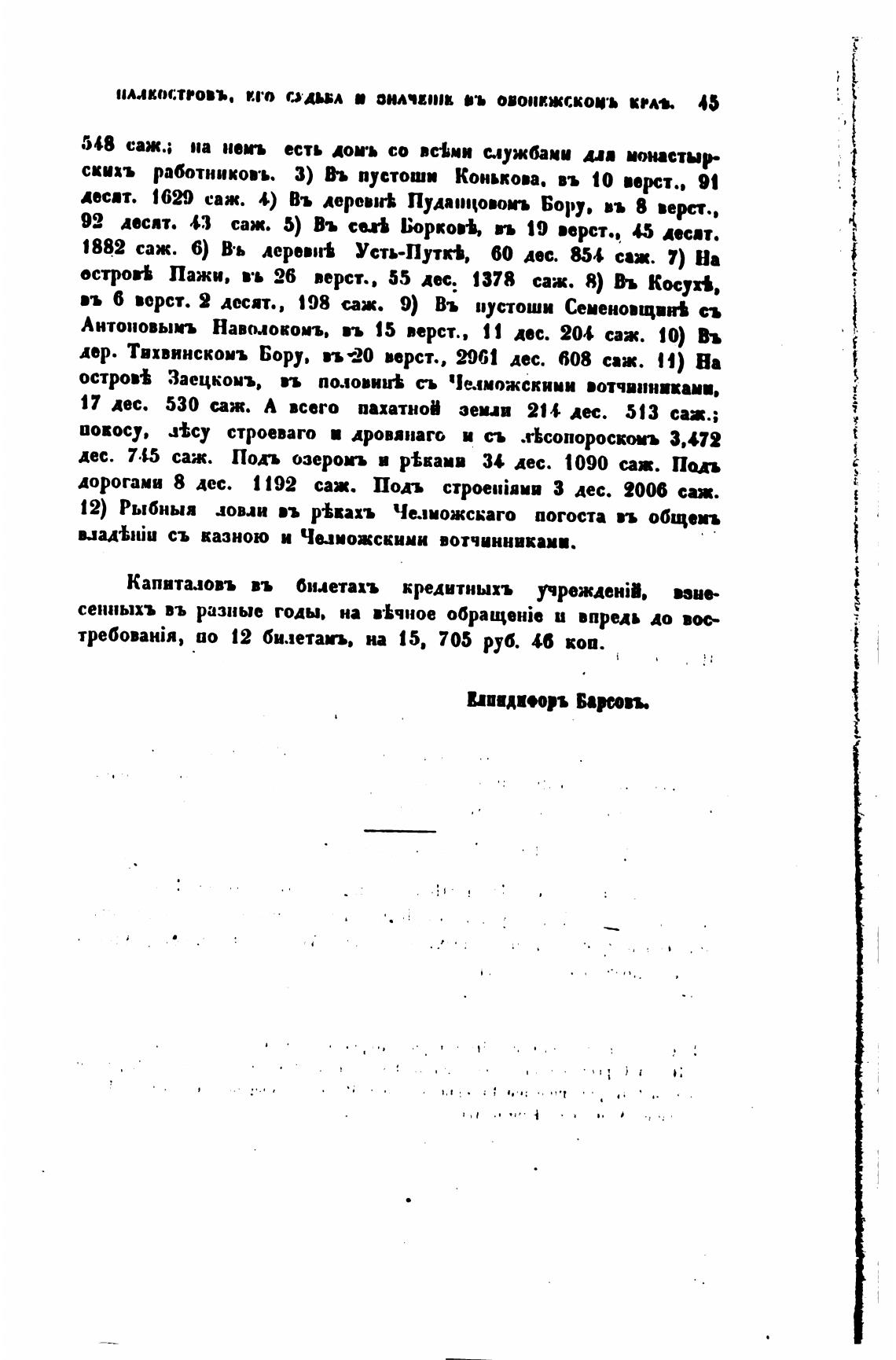 дес. 745 саж. Подъ озероп и р%каив 34 лес. 1090 саж. Пал