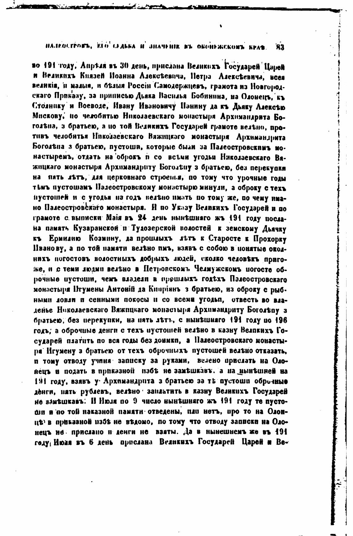 но ПалеостровЬкаго монастыря. И по Указу Велпвихъ Государей и во