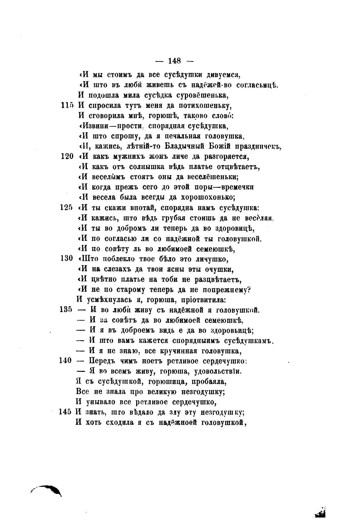 135 — И во любћ живу съ надёжной я головушкой.