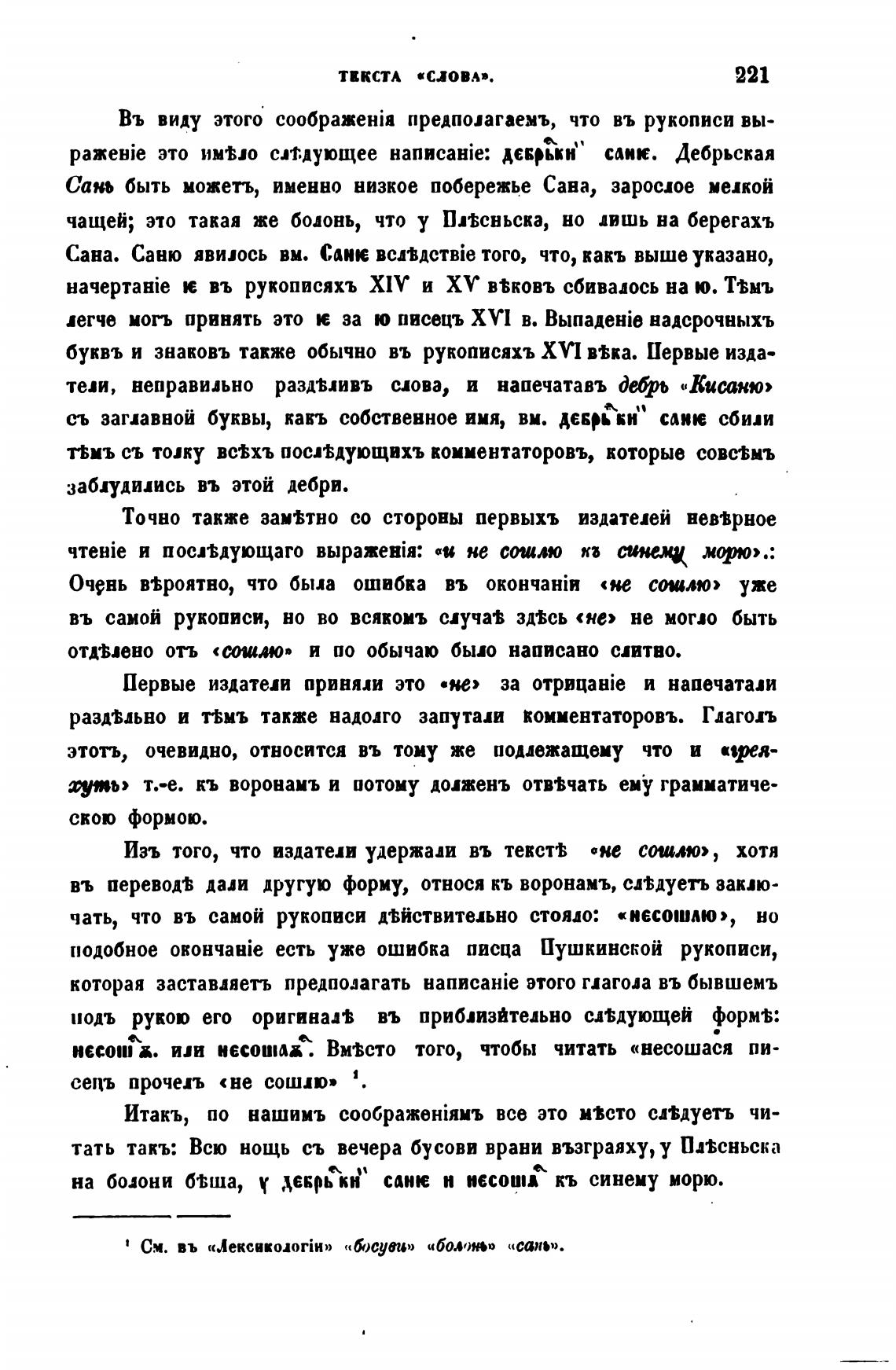 раздвльно и твмъ также надолго запутали комментаторовъ. Глагол