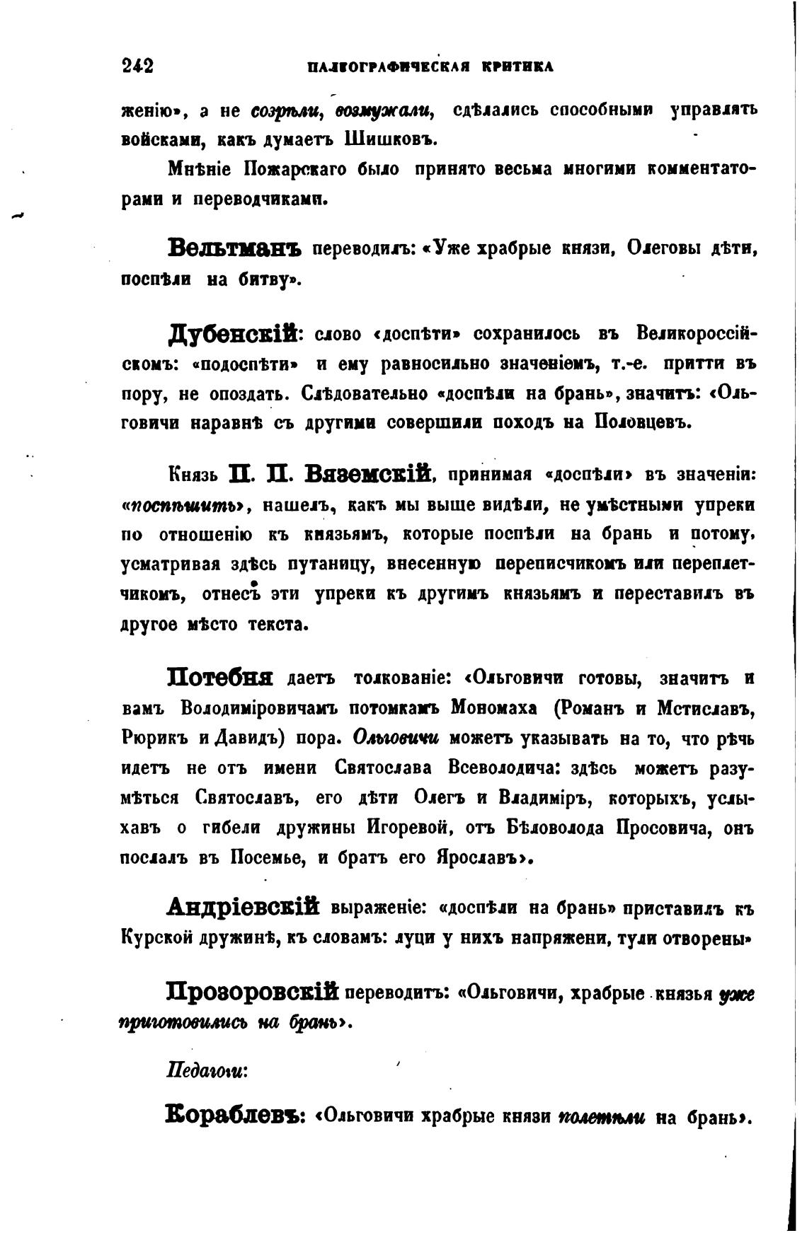 Вељтманъ переводил: «Уже храбрые князи, Олеговы дтти,