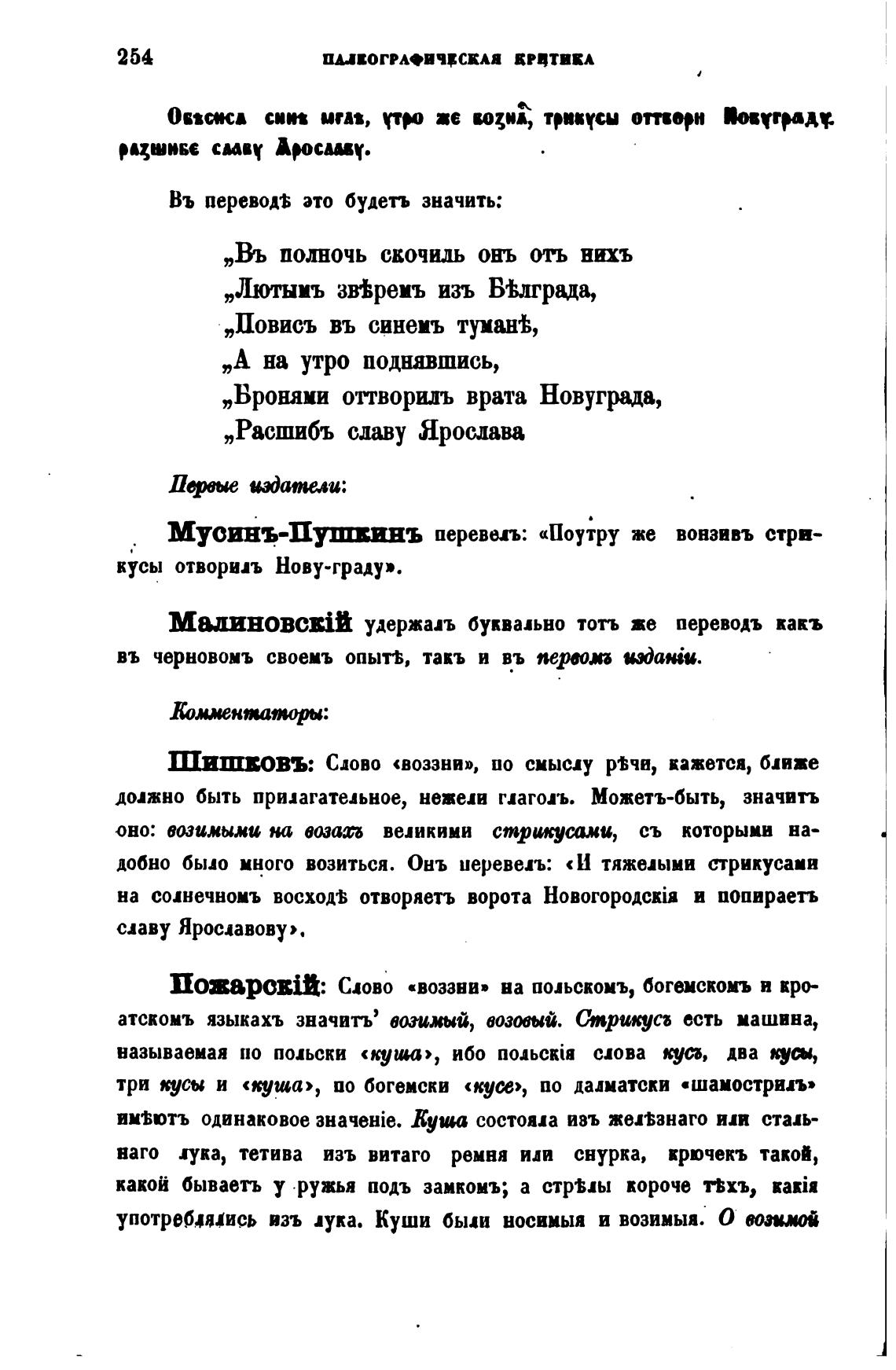 Мусинъ-Пушвинъ перевел: «Поутру же вонзивъ стри-