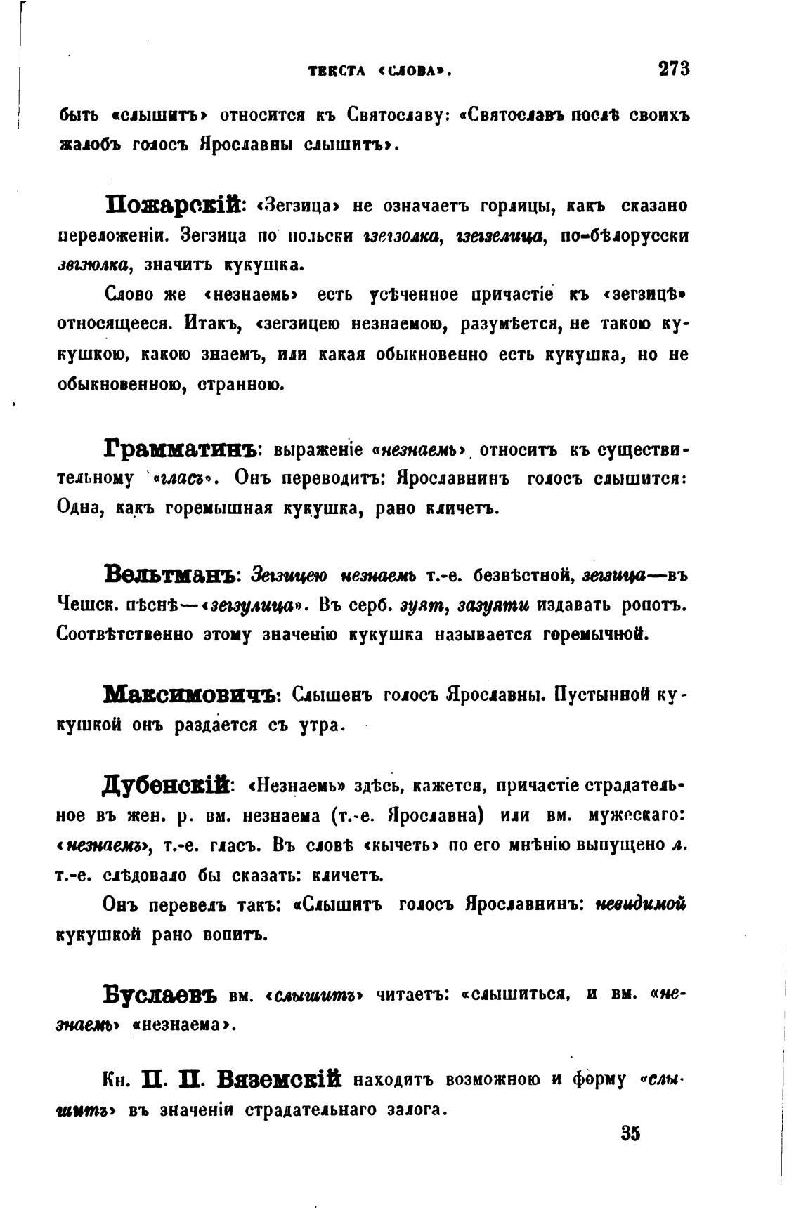 Онъ перевел такъ: «Слышитъ голосъ Яросјавнинъ: невидимой