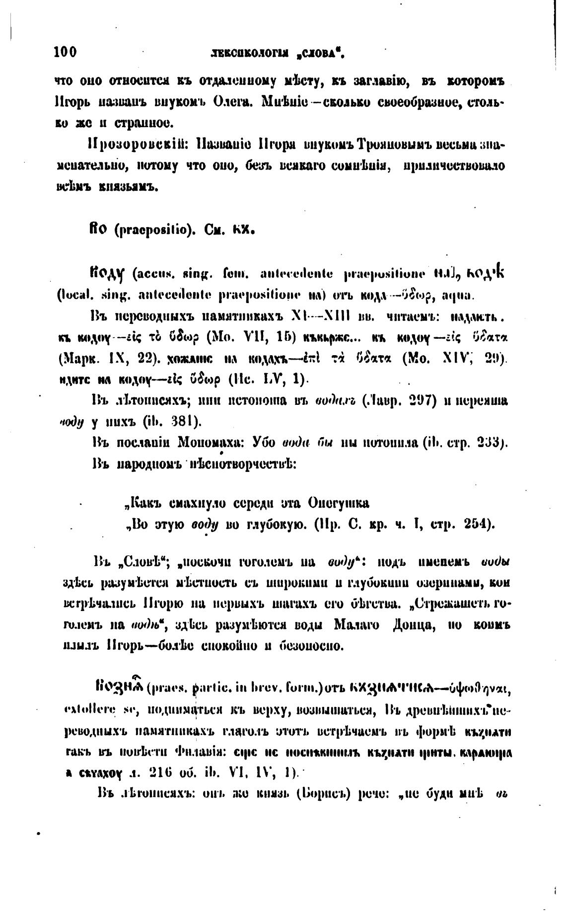 Въ nwqauiu Мономаха: Убо иоди би ны потопила (ib. стр. 233).