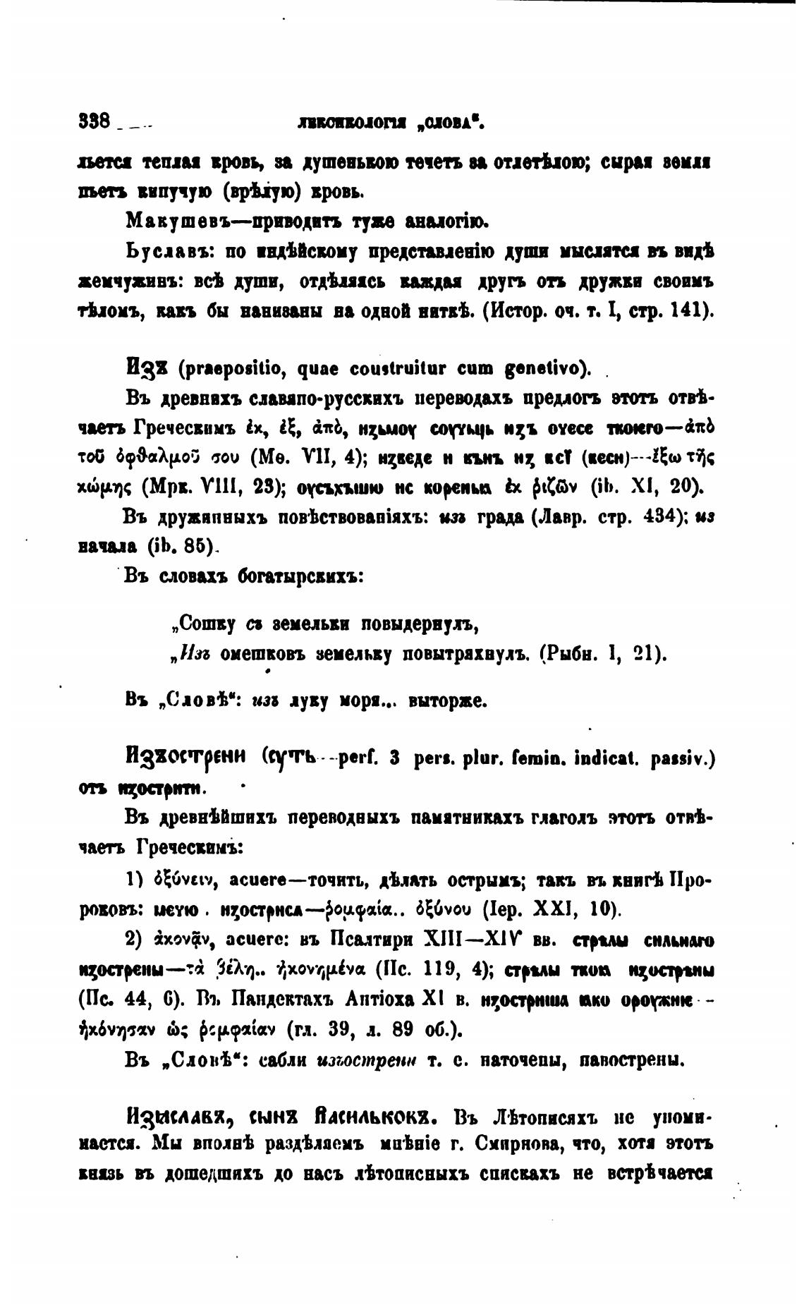 Въ древнЫшихъ переводвыхъ памятникахъ глаголь этоть от“-