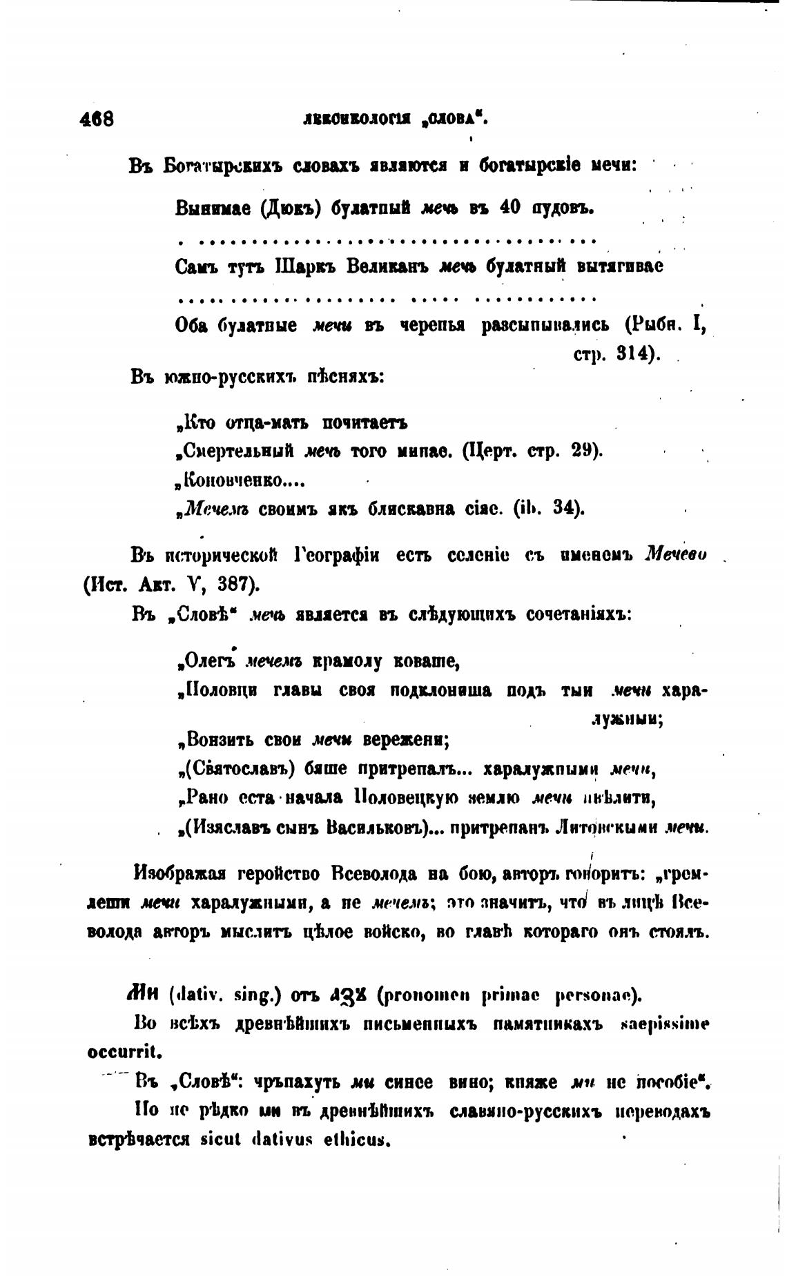 Въ Богатыревихъ словахъ явпотсд и мечи: