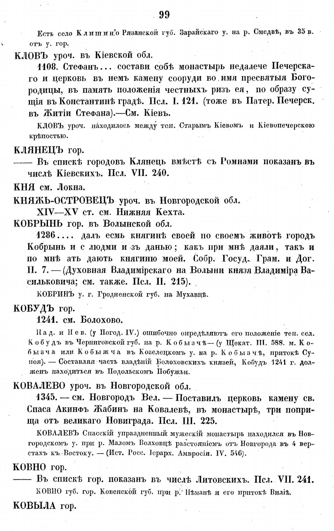 Ко будь въ Черниговской губ. на р. Кобызчж— (у Щекат. ПТ. 588. м. К о-