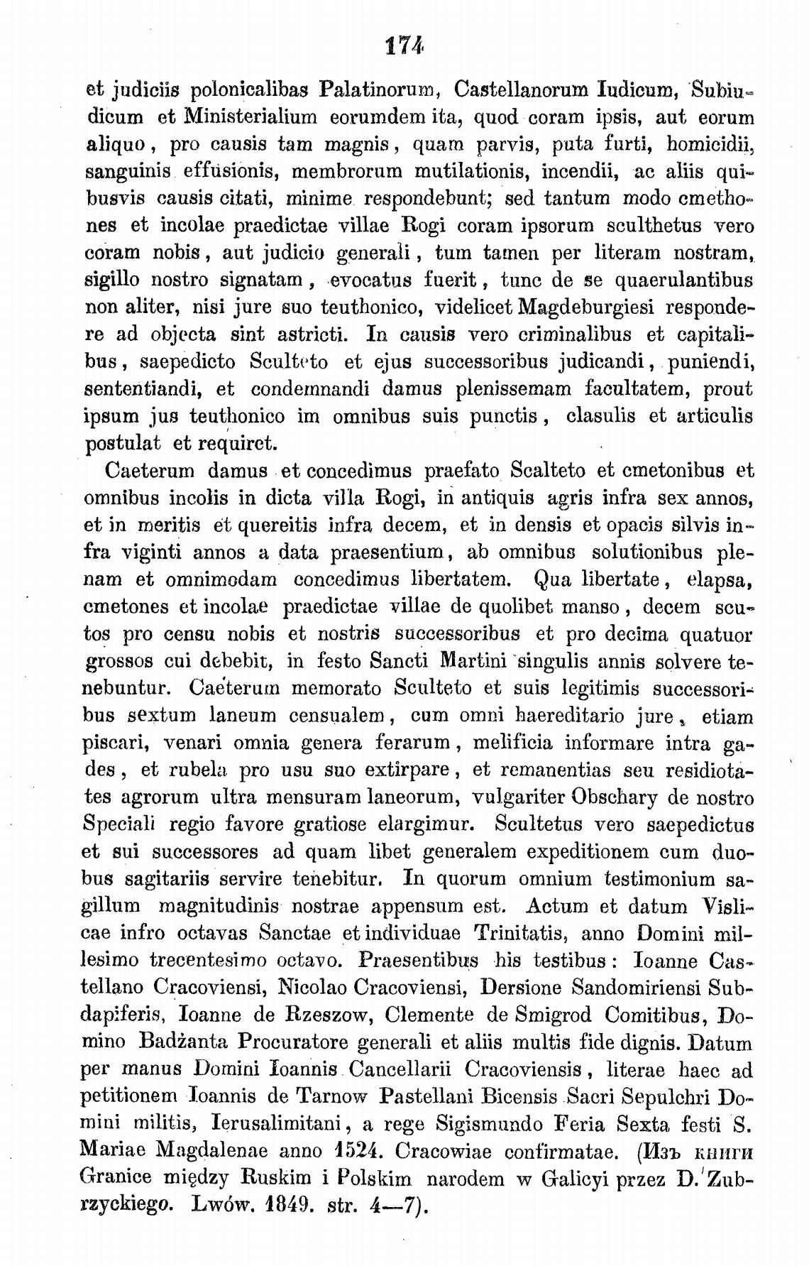 tellano Cracoviensi, Nicolao Cracoviensi, Dersione Sandomiriensi Sub-