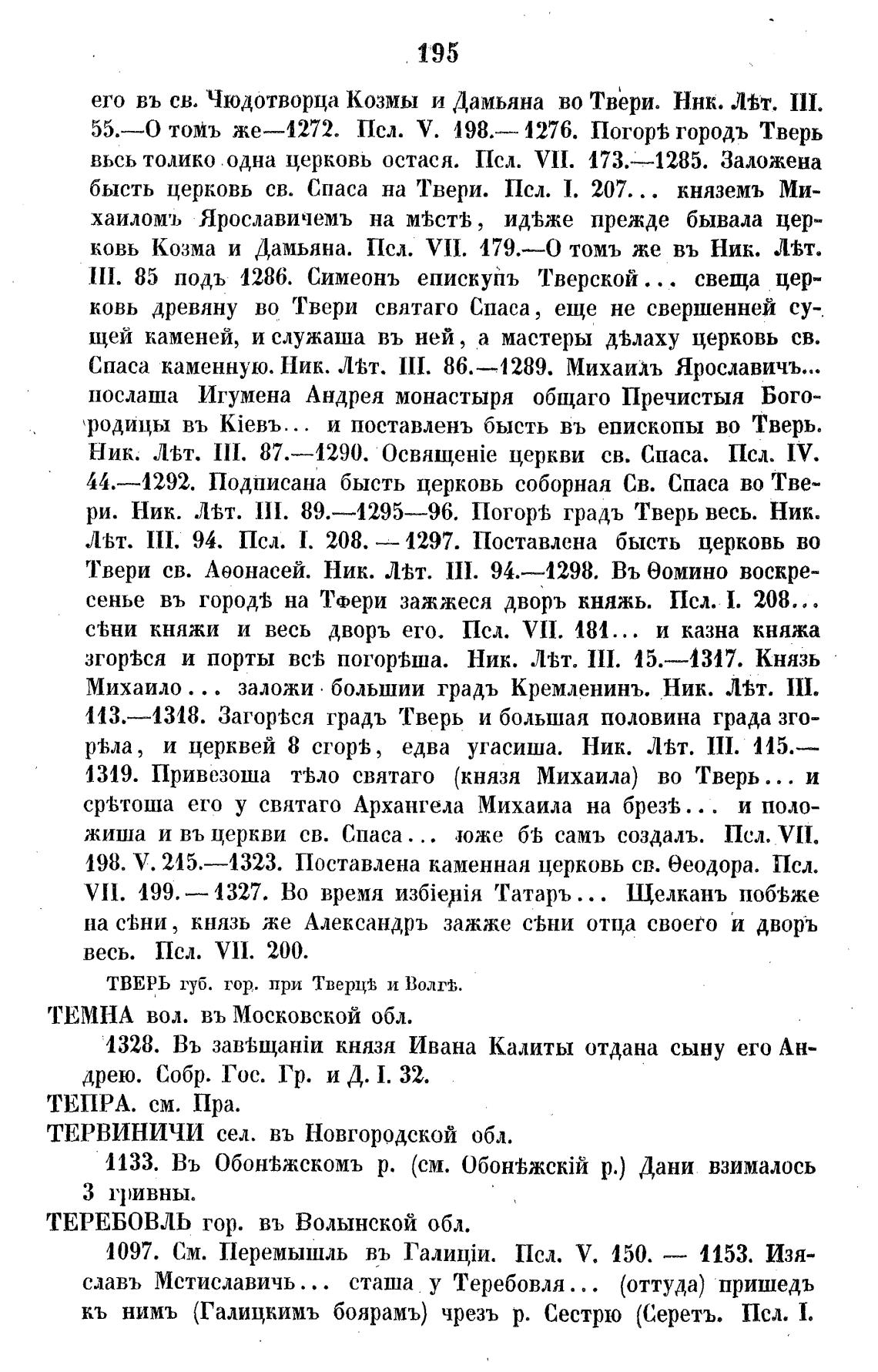 сенье въ городь на Тфери зажжеся дворъ княжь. Пел. 1. 208...