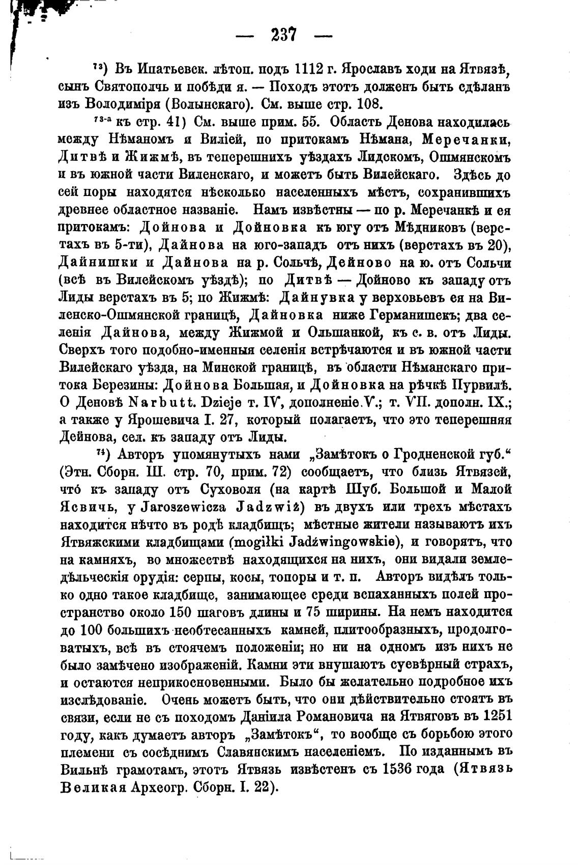 (Этн. Сборн. Ш. стр. 70, прим. 72) сообщаеть, что близь Ятвязей,
