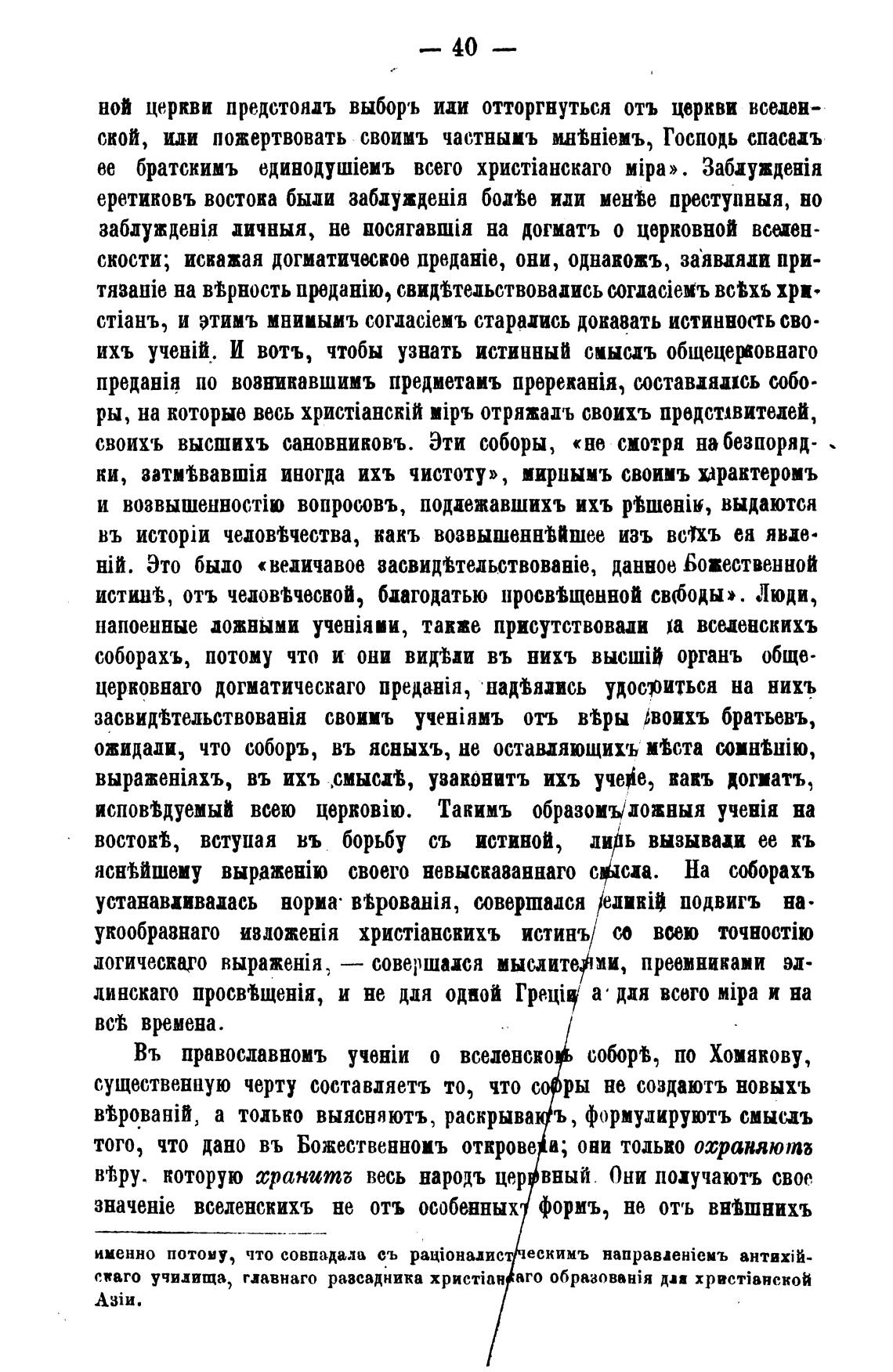 Въ православномъ о вселенско соборь по Хомякову,