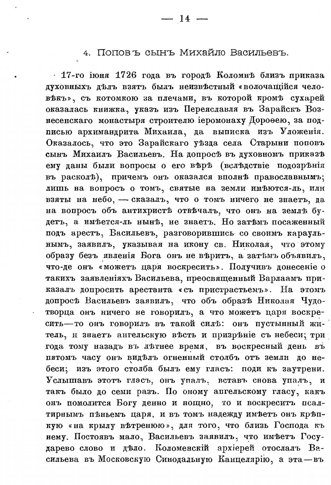 сынъ Михаилъ Васильевъ. На допросгВ въ духовномъ приказ“Ь