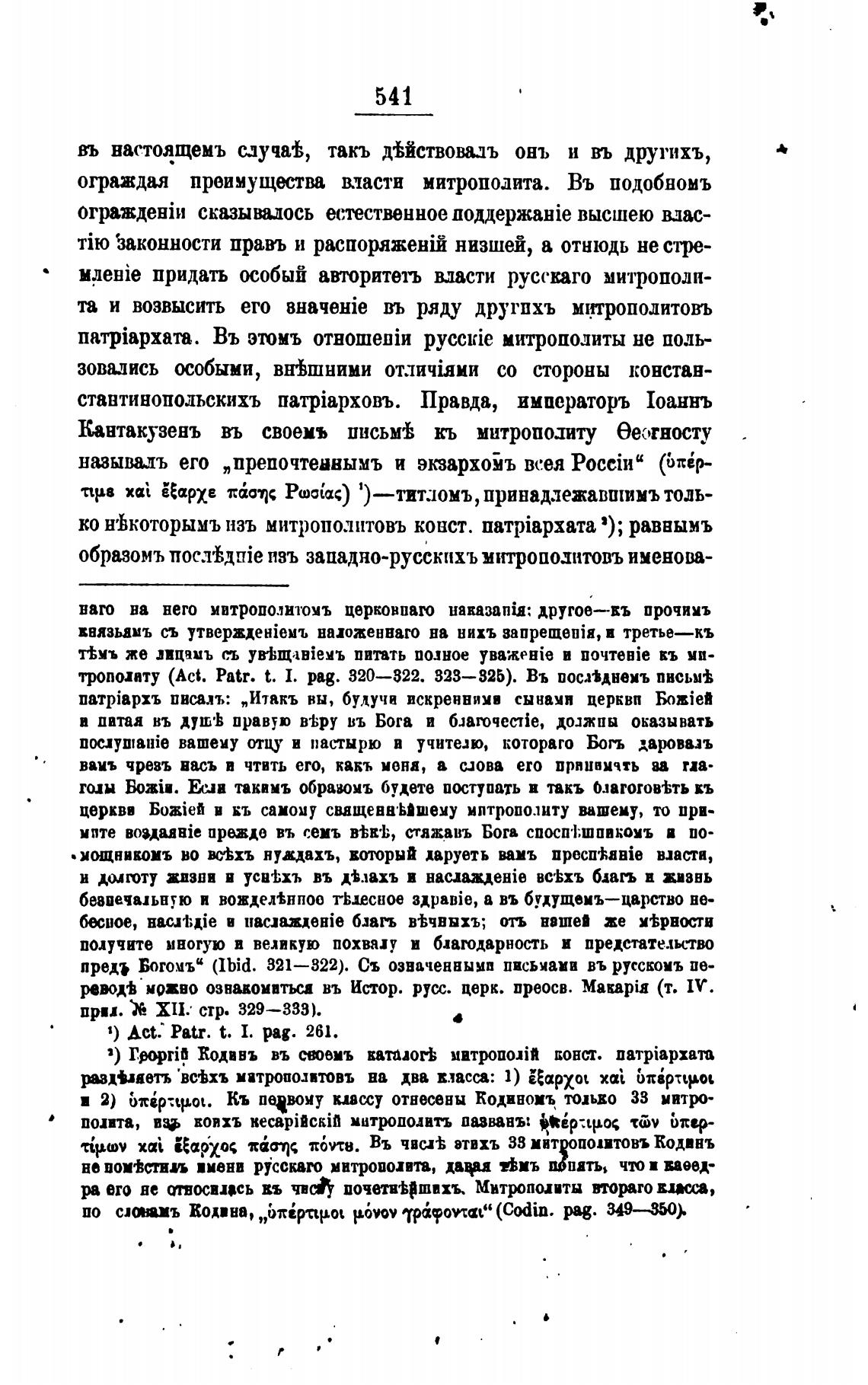 Кантакузенъ въ своемъ письм± кь митрополту еетносту