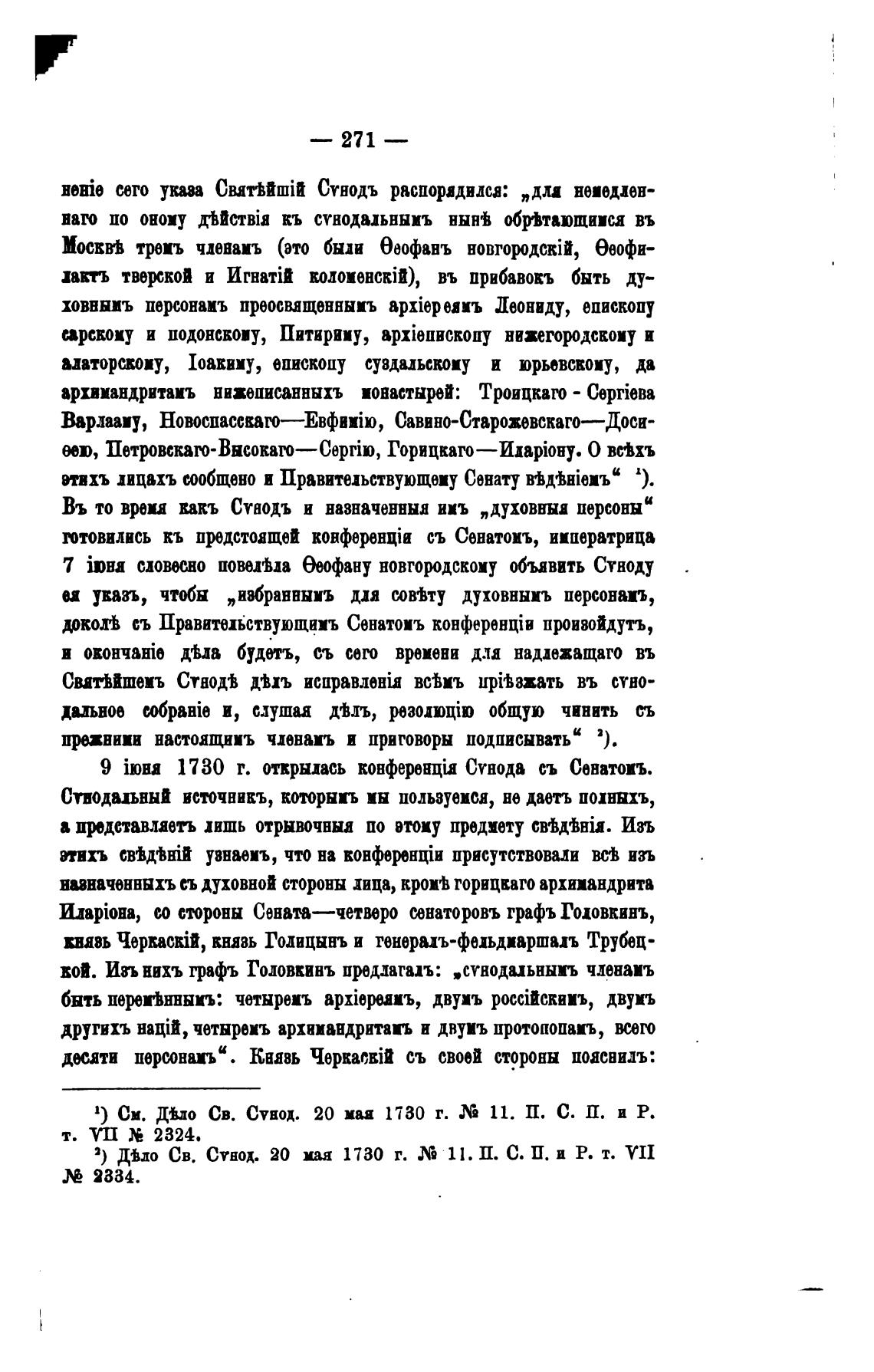 1) Си. ДЬо Св. Сувод. 20 мад l730 г. 11. П. С. П. и Р.