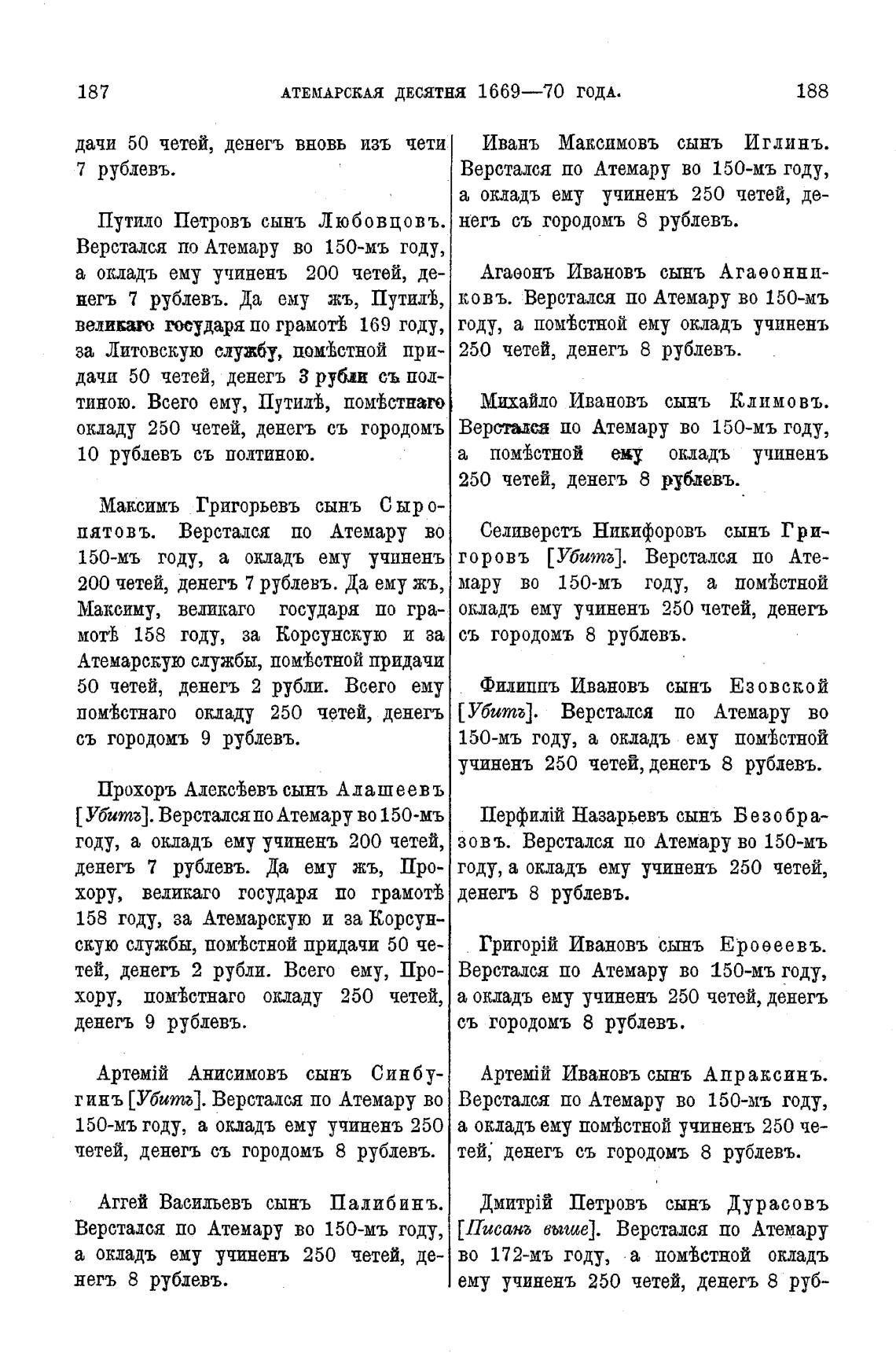 тей, денегъ 2 рубли. Всего ему, Про- Верстался по Атемару во 150-мъ году,