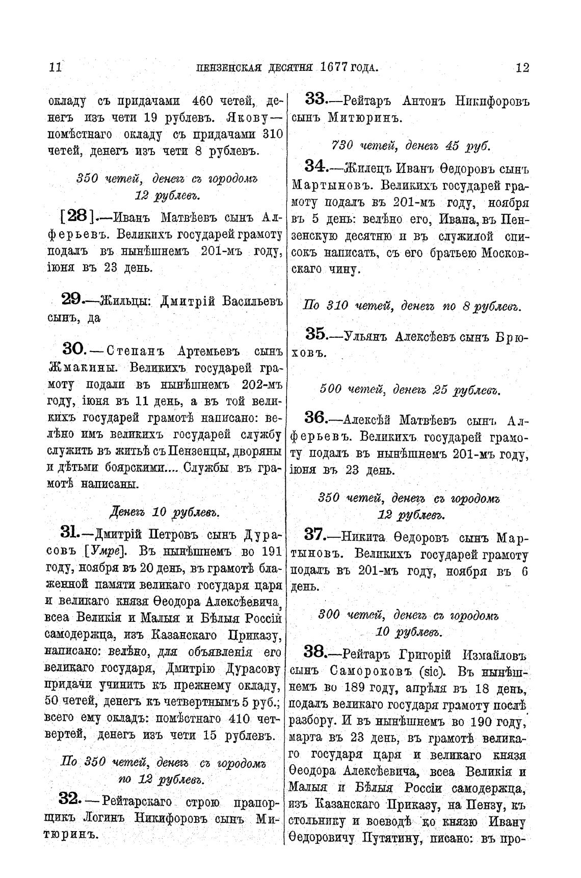 ПЕНЗЕНСКАЯ ДЕСЯТНЯ 1677 ГОДА.