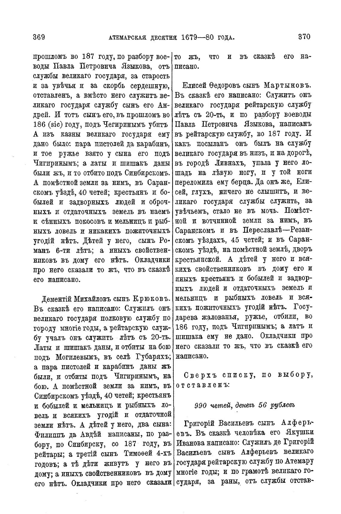 рейтары; а сынъ Тимоеей 4-хъ Васильевъ сынъ Алферьевъ великаго