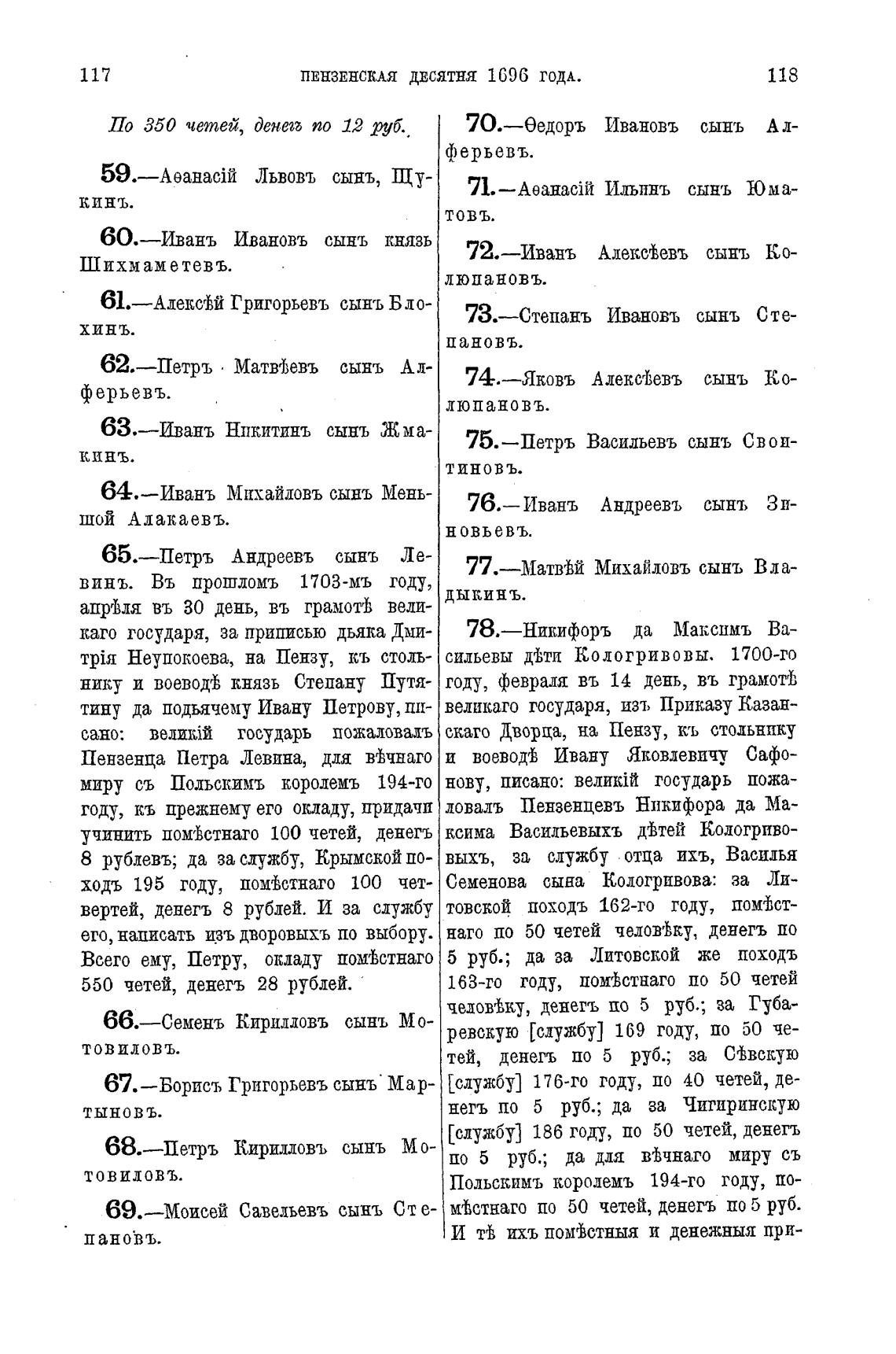 ПЕНЗЕНСКАЯ ДЕСЯТНЯ 1696 ГОДА.