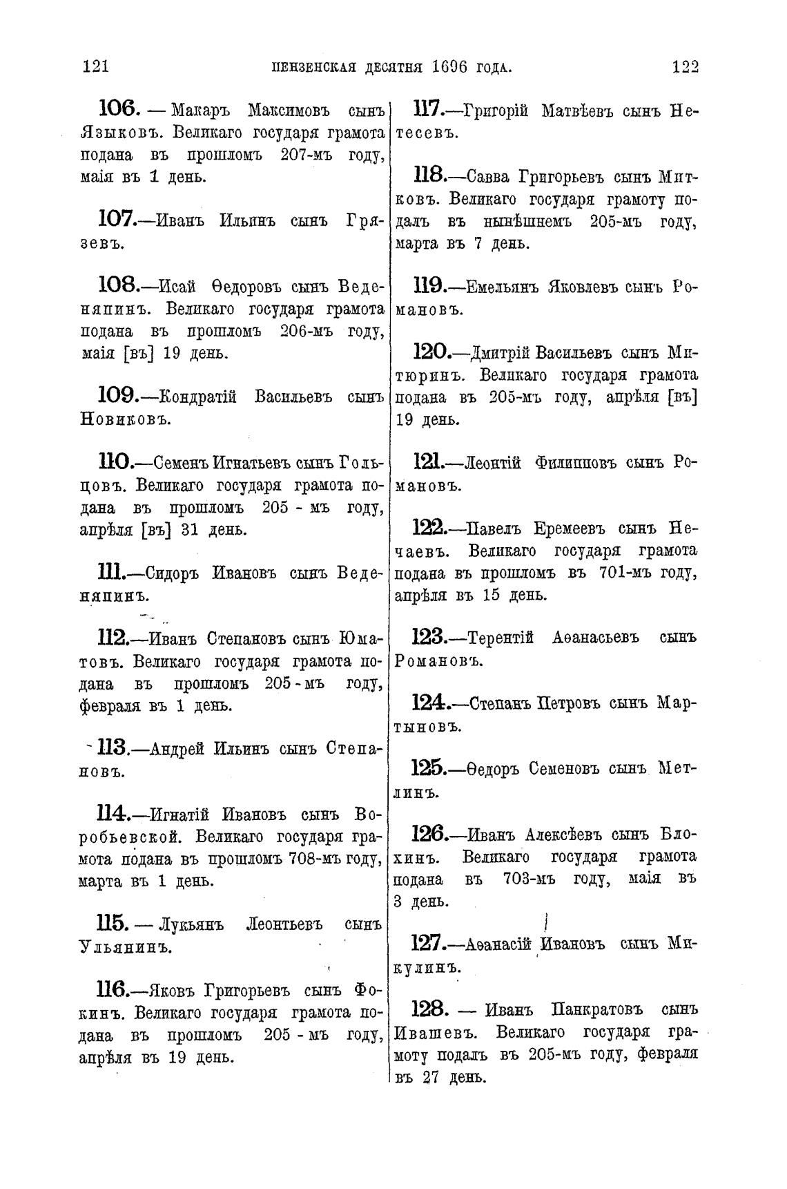 107.—Иванъ Илышъ сынъ Гря- даль въ нын±шнемљ 205-мъ году,