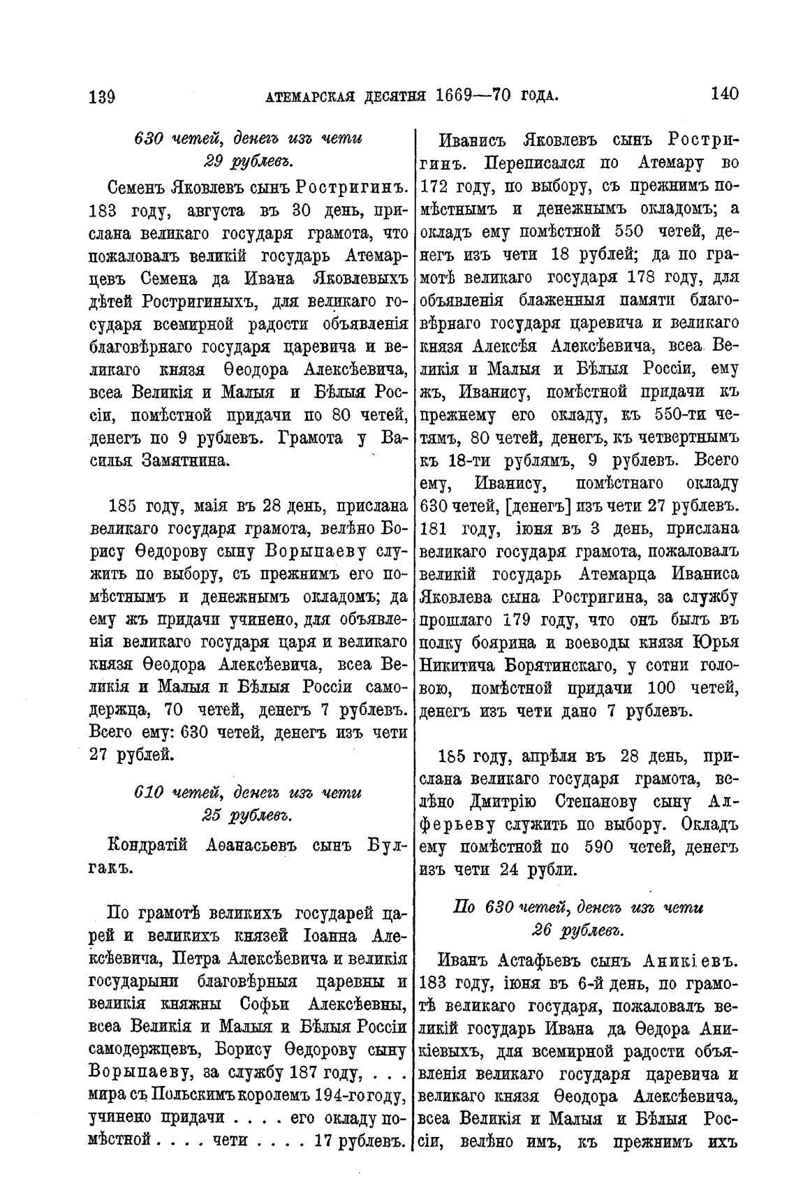 630 четей, [денегъ] изъ чети 27 рублевъ.