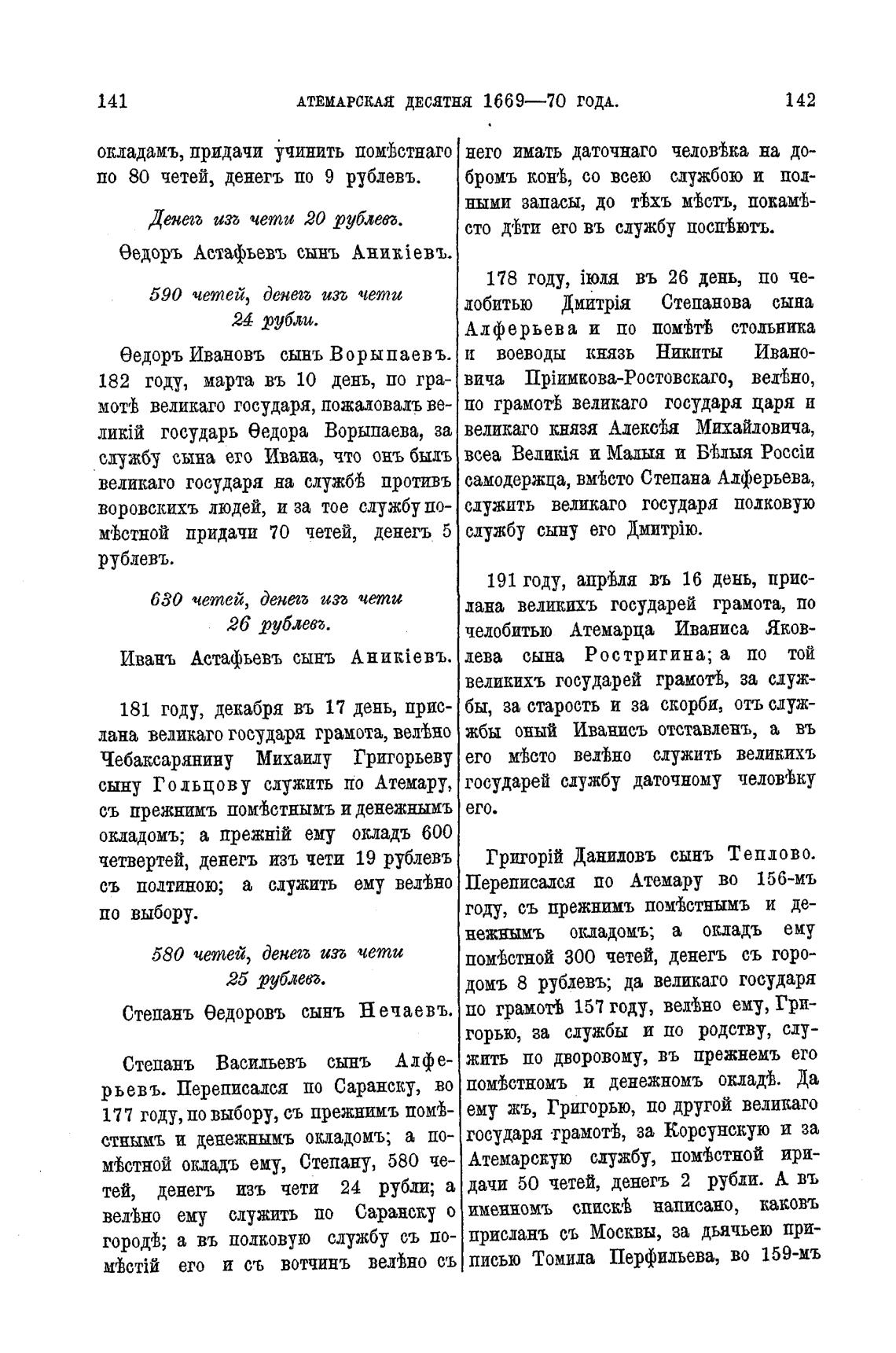 Мстной окдадъ ему, Степану, 580 че- Атемарскую службу, помТстной ири-