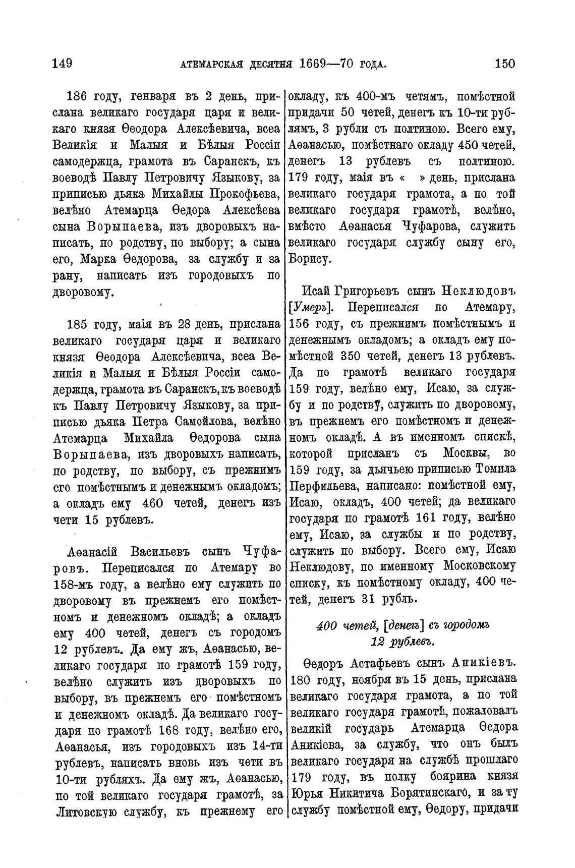 186 году, генваря въ 2 день, при- окладу, кь 400-мъ четямъ, помгВстной