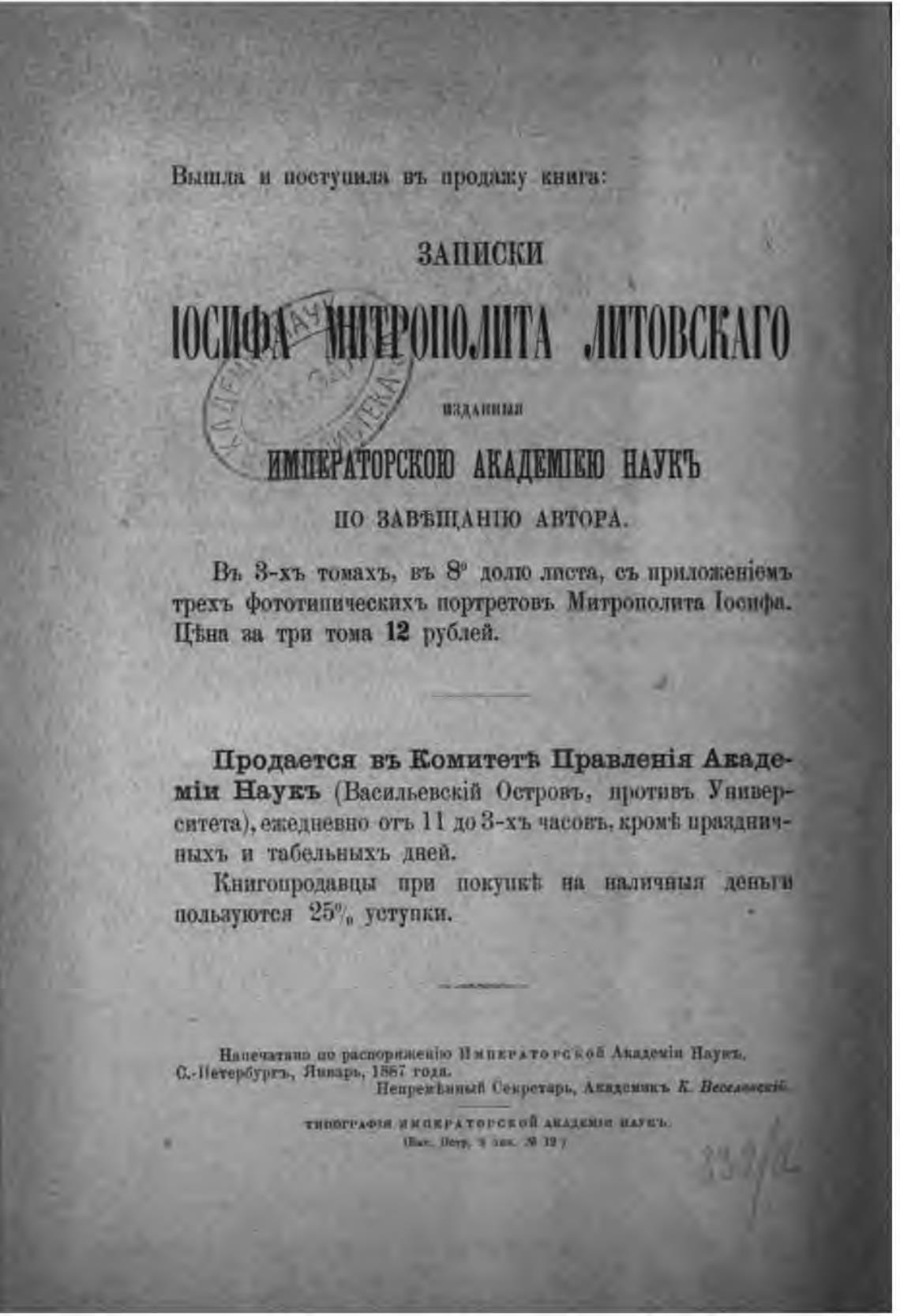 Продается въ Еомитет•в Аваде-