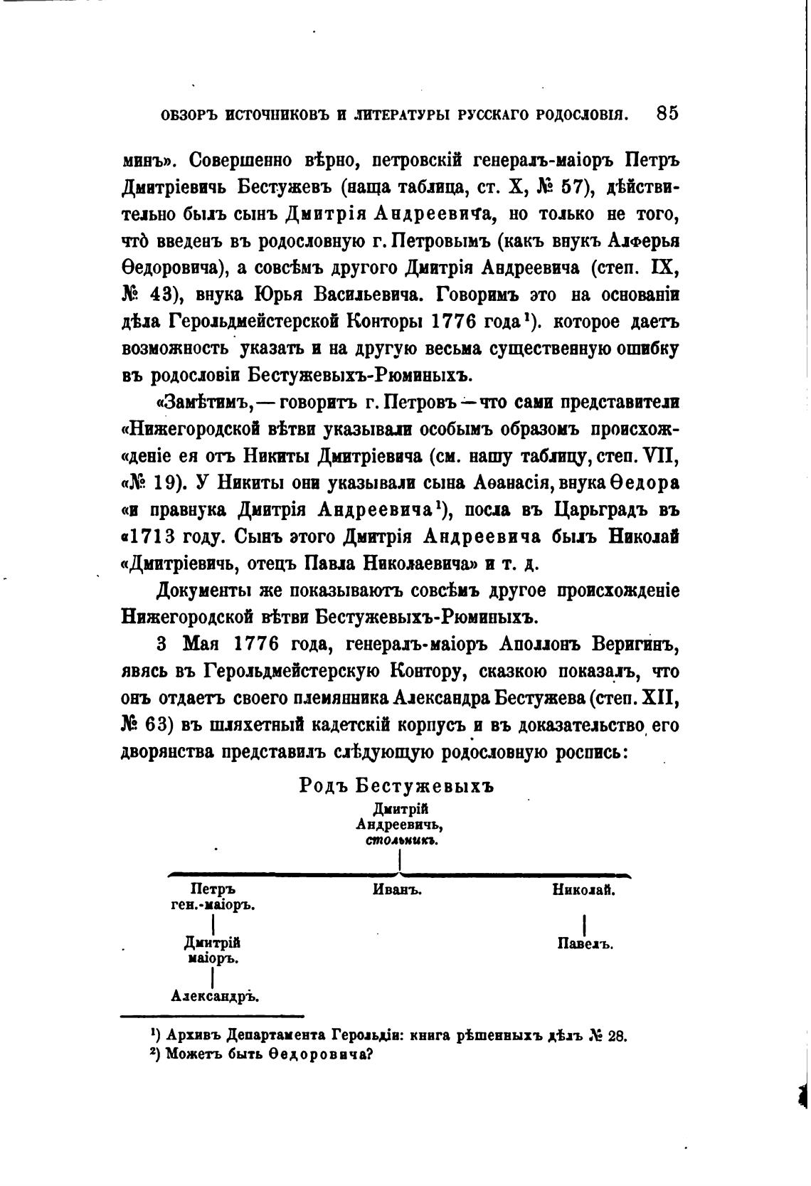 ОВЗОРЪ ИСТОЧНИКОВЪ И ЛТЕРАТУРЫ РУССКАГ0 родословия. 85