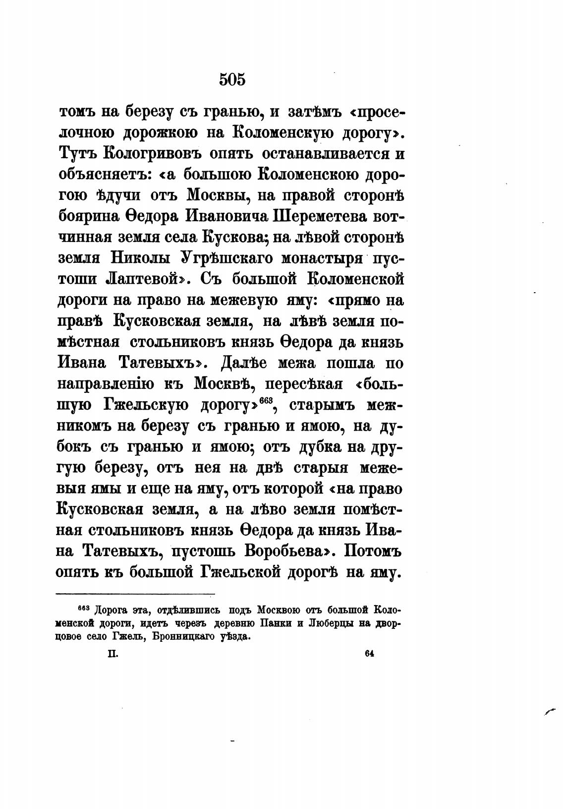 Дорога та, от$лившись подъ Москвою отъ большой Коло-