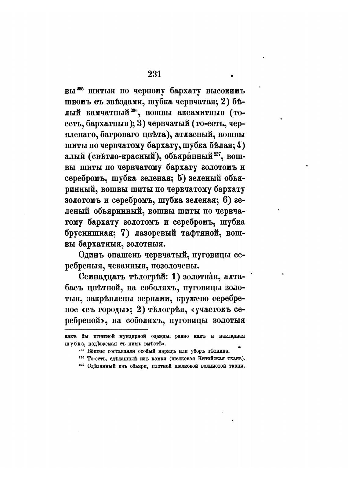 шиты по червчатому бархату, шубка бВлая; 4)