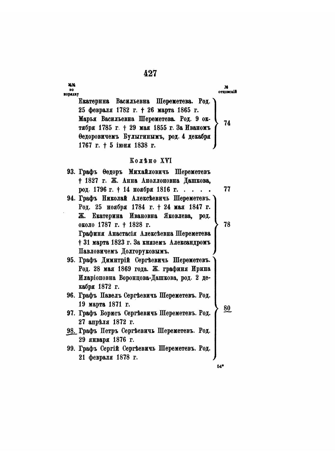 99. Графъ Сергђевичъ Шереметевъ. Род.