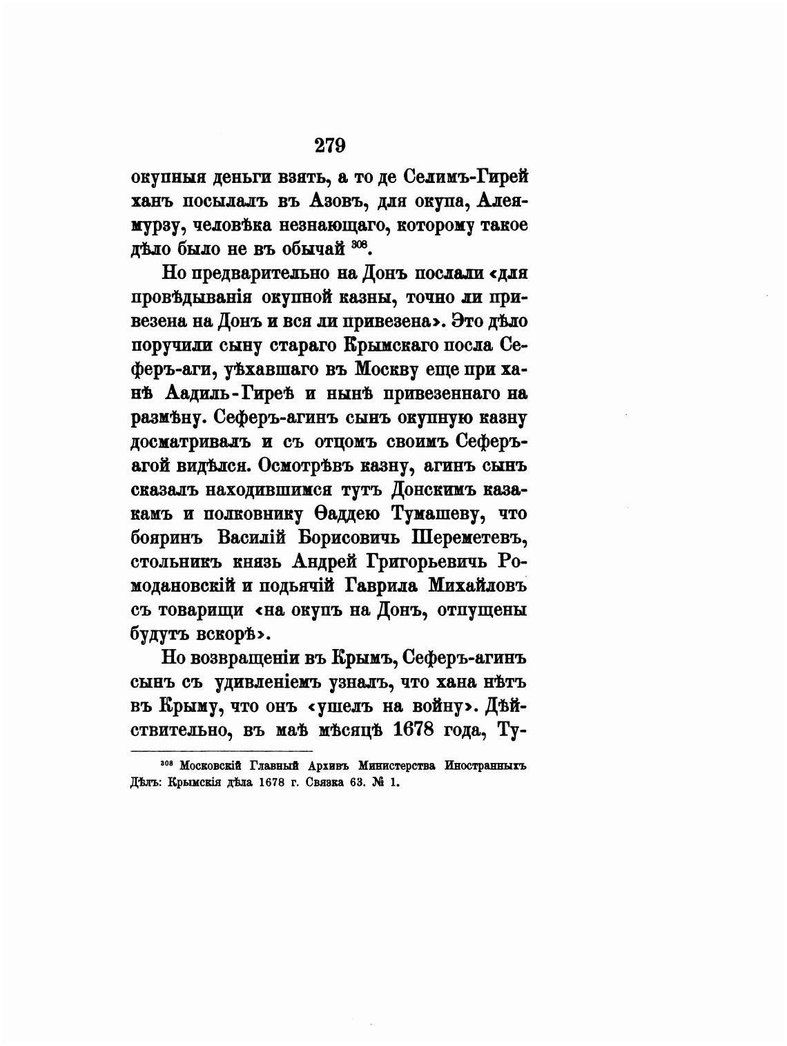 окупныя деньги взять, а то де Селимъ-Гирей