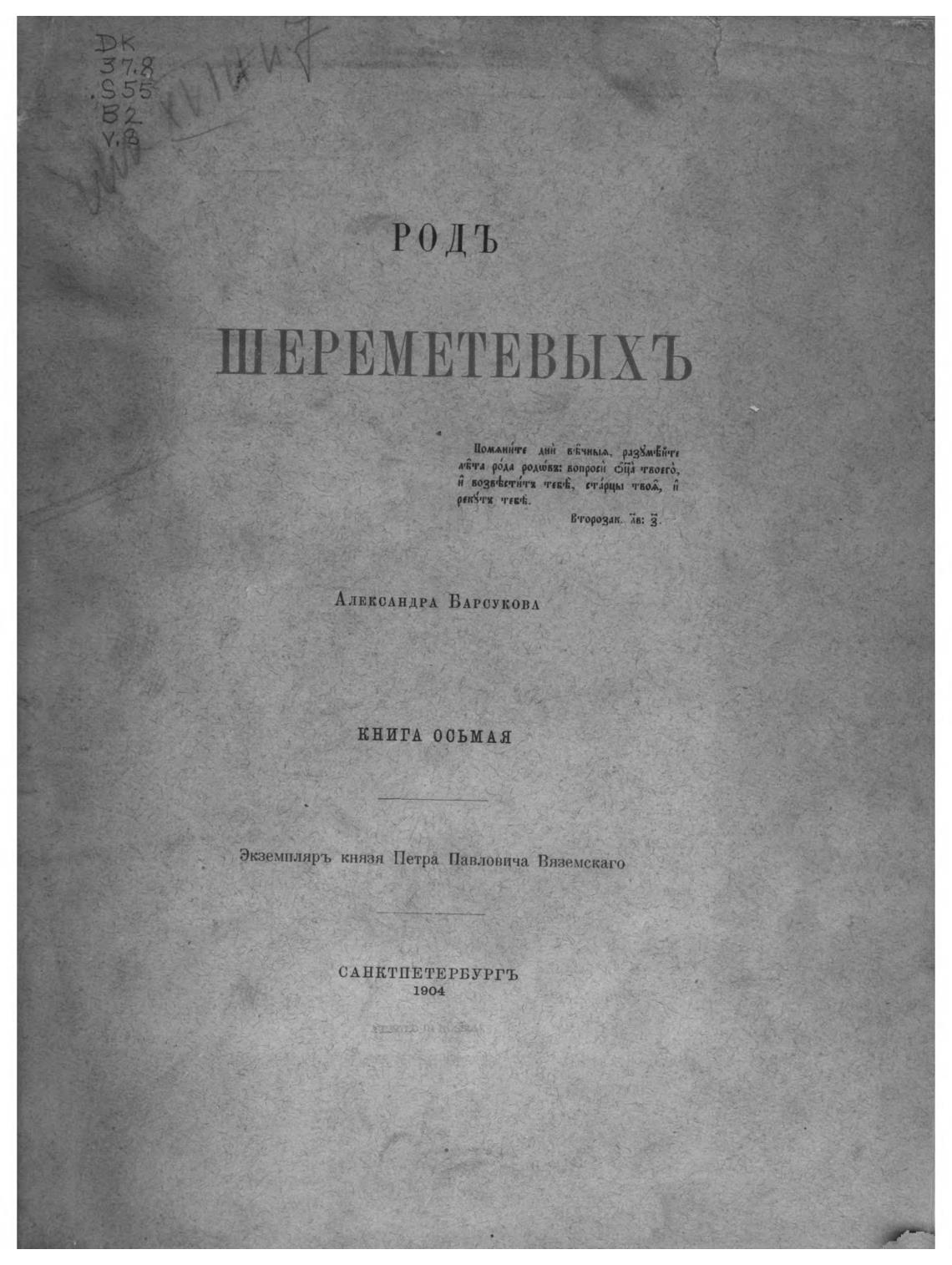 Экземпляръ князя ПетрА Павловича Вяземскаго
